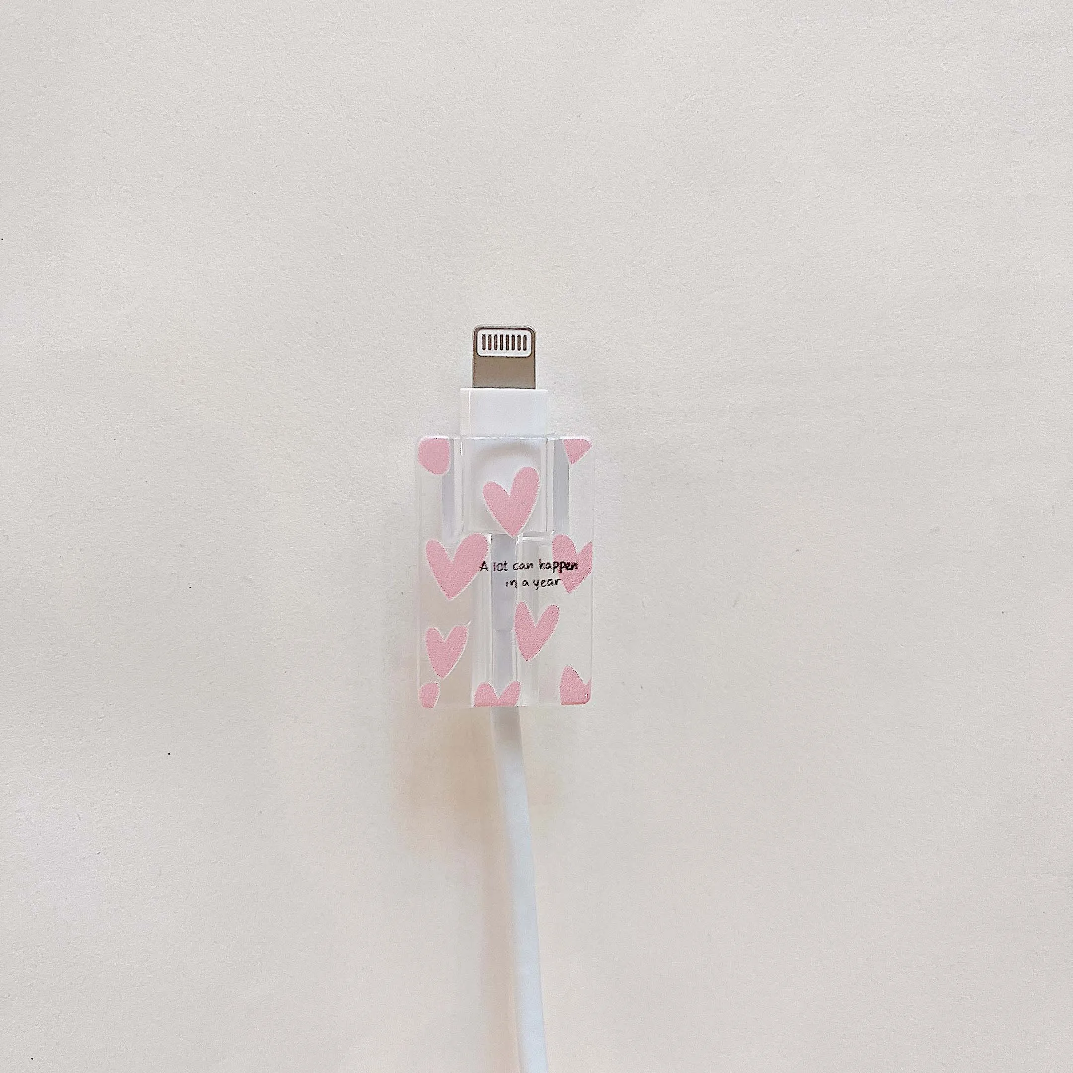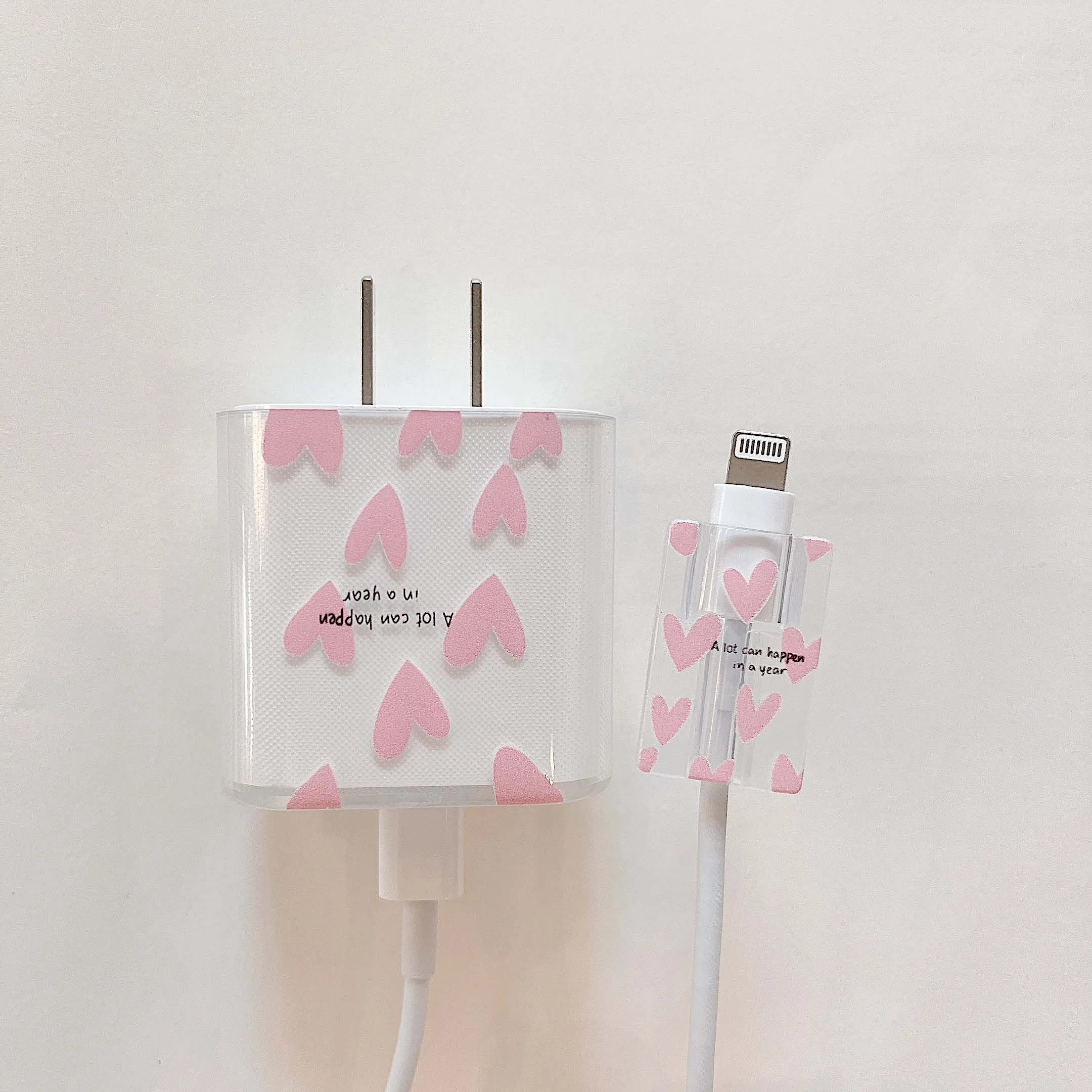 Pink love heart silicone soft dustproof cord line usb cable charging head winder case Protector For apple iphone 18/20W