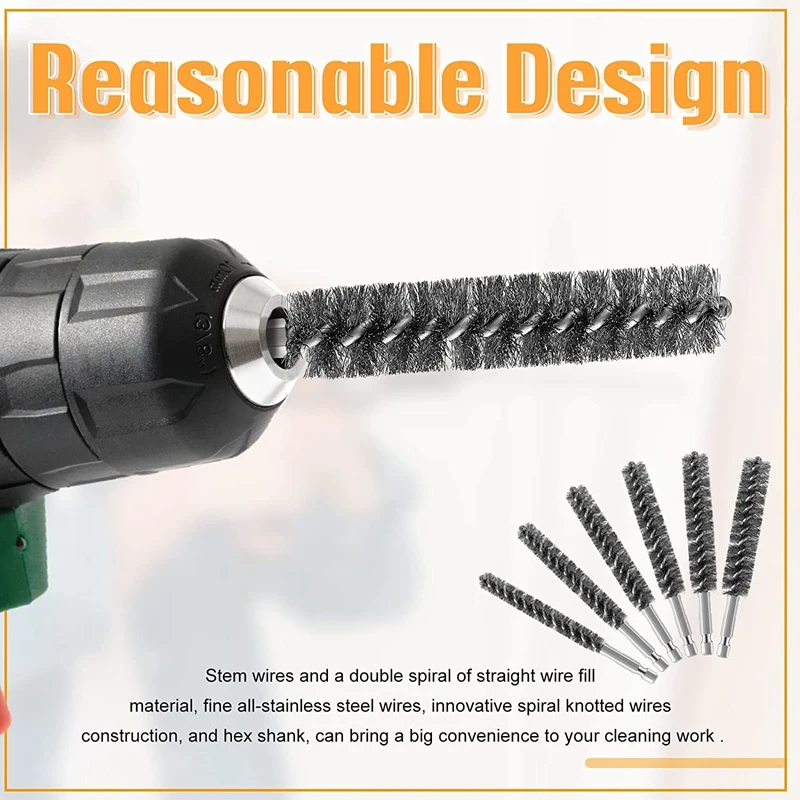 Reasonable design: features stem wires and a double spiral of straight wire fill material, fine all-stainless steel wires, innovative spiral knotted wires construction, and hex shank, the stainless steel bristles wire brush can bring a big convenience to your cleaning work