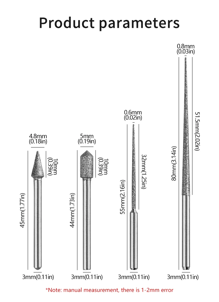3MM Shank Grinding Rods Mini Drill Diamond Grinding Head Bur Needle Engraving Carving Polishing Glass Jade Stone Drill Bit