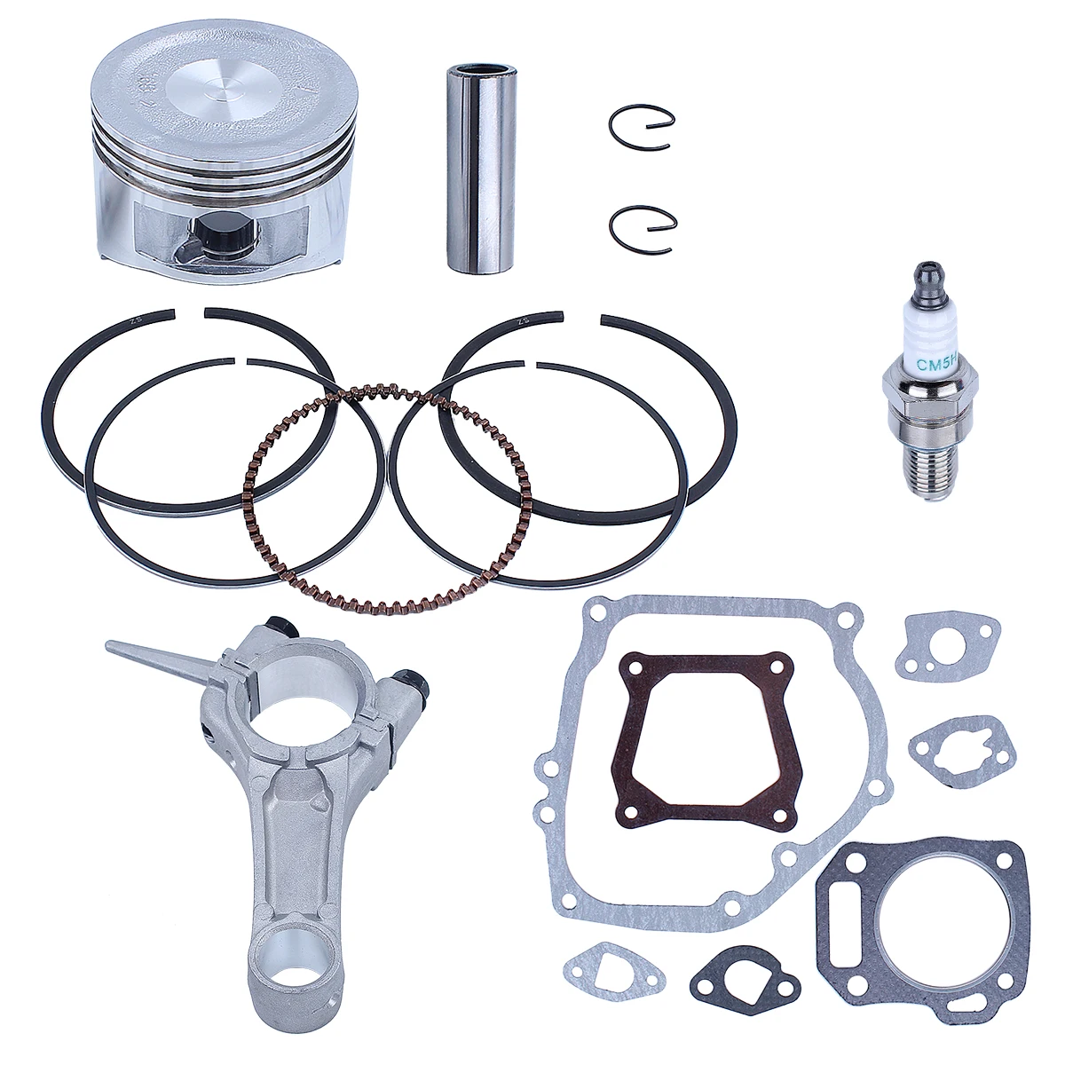 Package Contents:1 x Connecting Rod, 1 x 68mm Piston, 1 x Pin, 5 x Ring, 2 x Circlip, 1 x Crankcae Gasket, 1 x Cylinder Gasket, 1 x Valve Cover Gasket, 1 x Intake Gasket, 3 x Carb Gasket,1 x Spark Plug