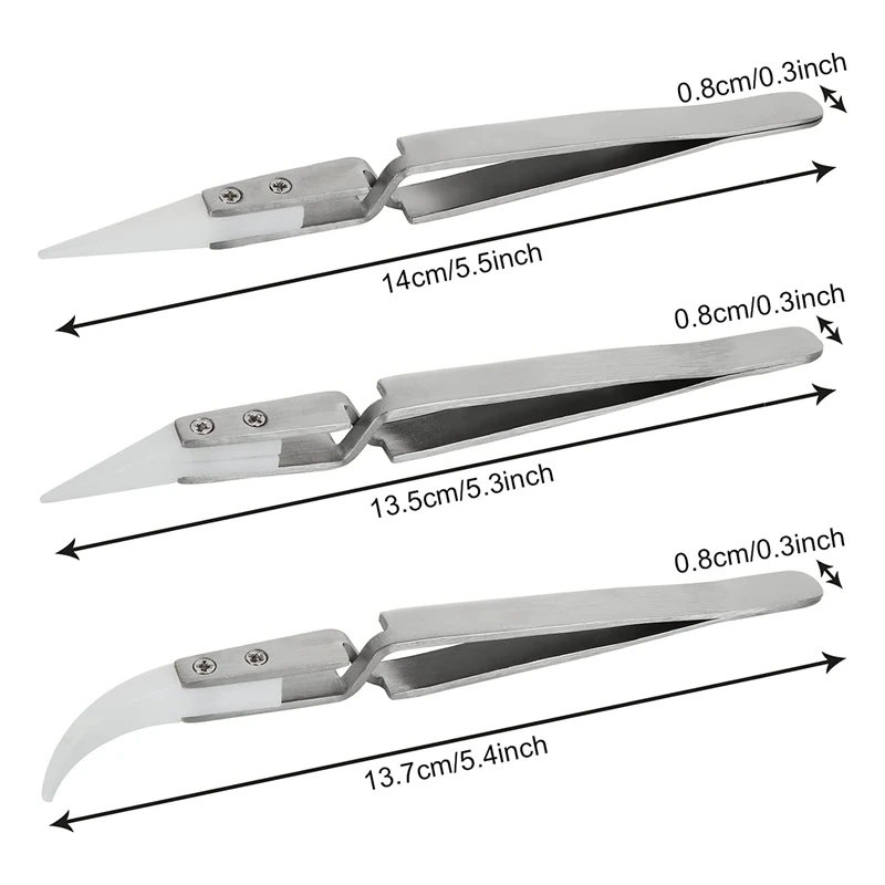 [Replaceable Ceramic Tips]Stainless steel welded tweezers handle and ceramic tips are assembled with screws. You can easily replace damaged ceramic tips to save money.
