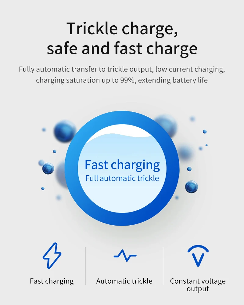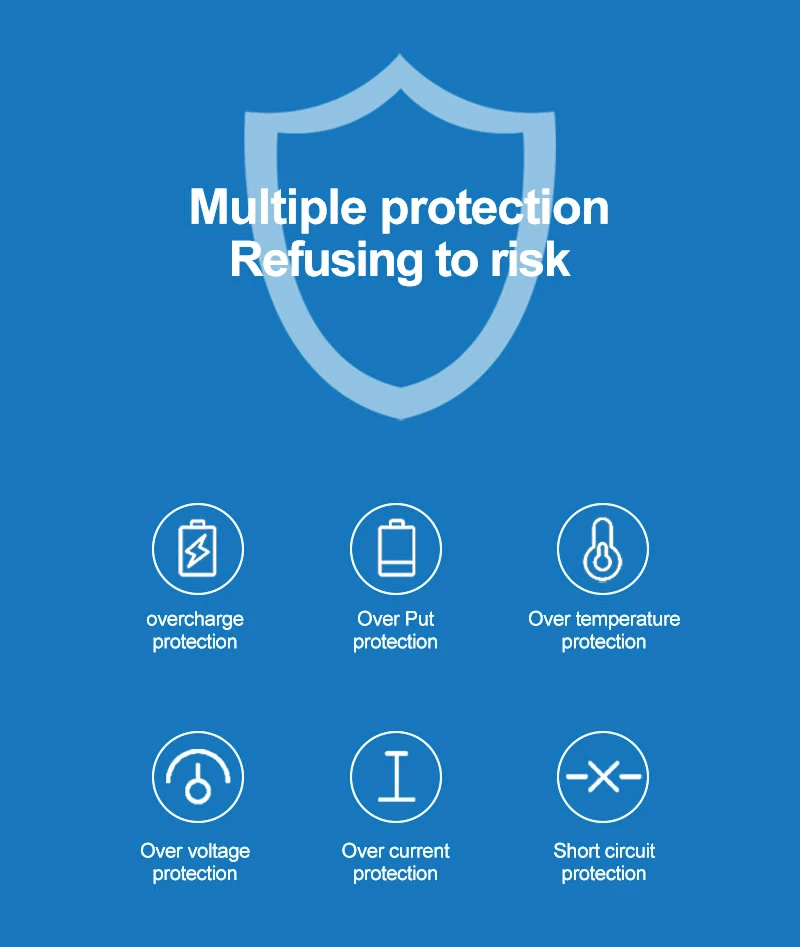 2.Charging under IC control. -intelligently cut off the rapid charging mode, Then transfer to trickle charging, insure fully charged, Meanwhile protect from over charging The LCD will be on and show its background color for 2 seconds when connected with the power source, then off.
