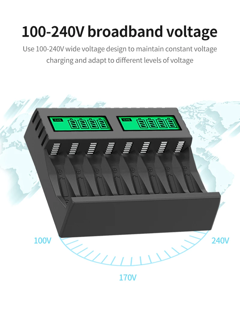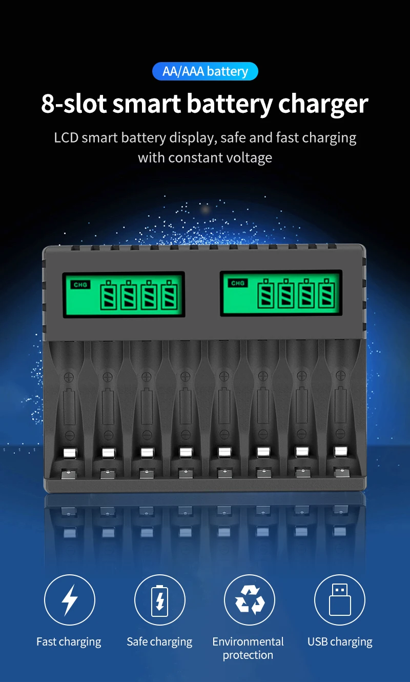 LCD Display Smart Intelligent Battery Charger With 8-Slot For AA/AAA NiCd NiMh Rechargeable Batteries aa aaa Charger
