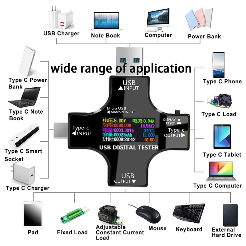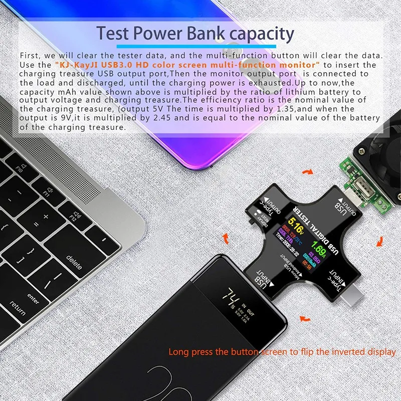 [Latest Upgraded IPS Color Display Screen]: New upgraded version offers 8 IPS main color screen display interfaces,allowing switching the display interface by pressing the key.With the new interface settings,this instrument can monitor voltage,current,capacity,electric quantity,power,load impedance,D/D- voltage and other data of USB.Click the button to switch in multiple interfaces.(Supports flipping the screen to 180 degree, and 3 kinds of personalized interfaces!)