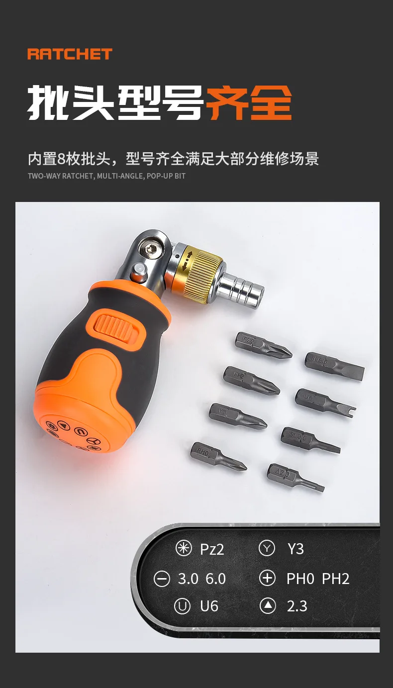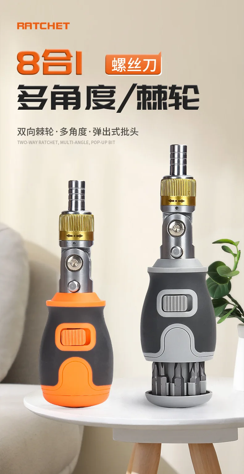8 in 1 Mini Ratchet Screwdriver Precision Multi Tools Magnetic S2 Bits Household Multi-purpose Pocket Portable Screw Driver Set