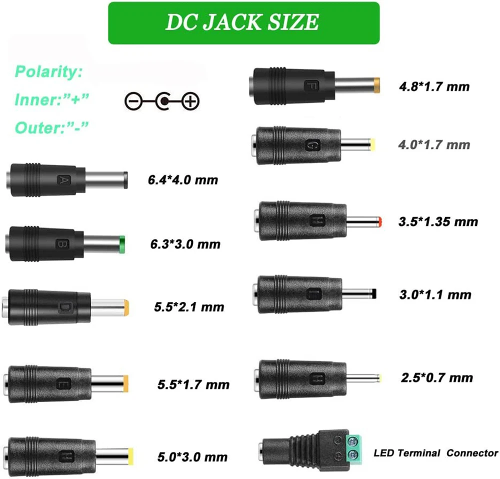 Remind: NOT FIT FOR 4 Prong and 3 Prong DC Connector.