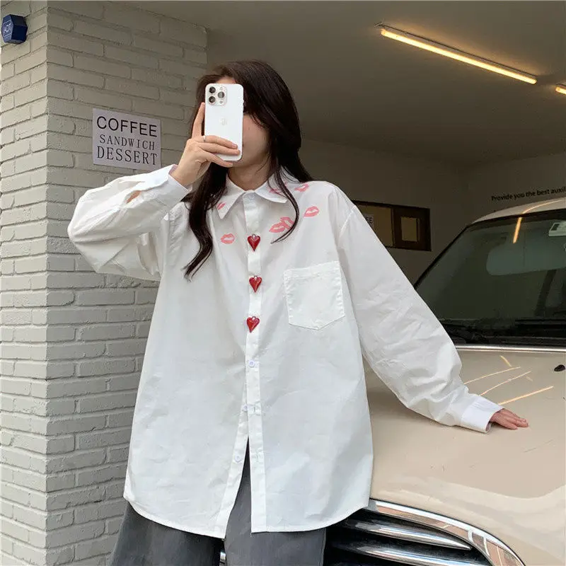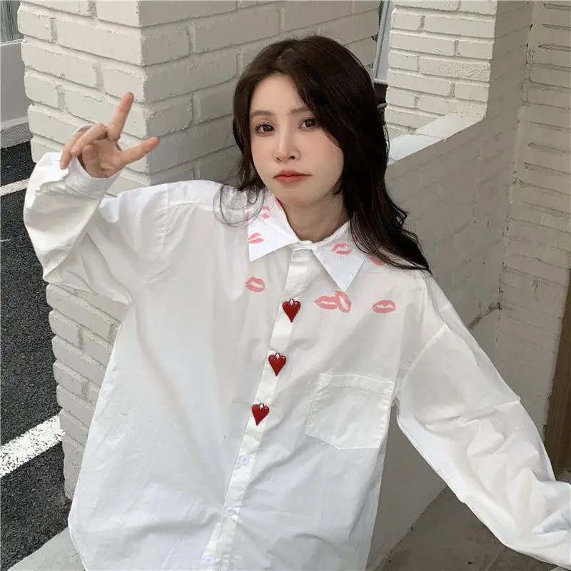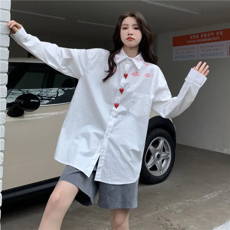 White Shirts Women Korean Style Loose Ins Vintage Simple Casual Streetwear Long Sleeve Tops Spring New Chic BF Students Camisas