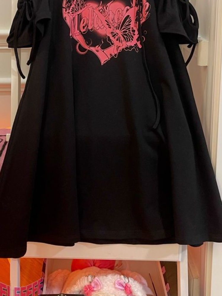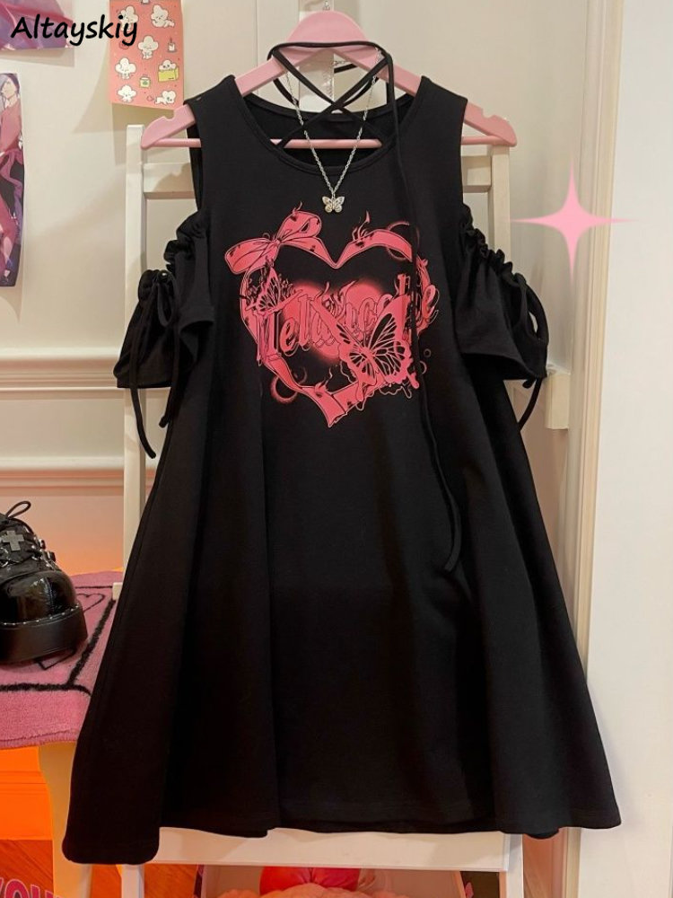 Y2k Gothic Dresses Women Hotsweet Chic Print Off Shoulder Vintage Punk Streetwear Loose Mini Vestidos Casual Fashion Schoolgirls