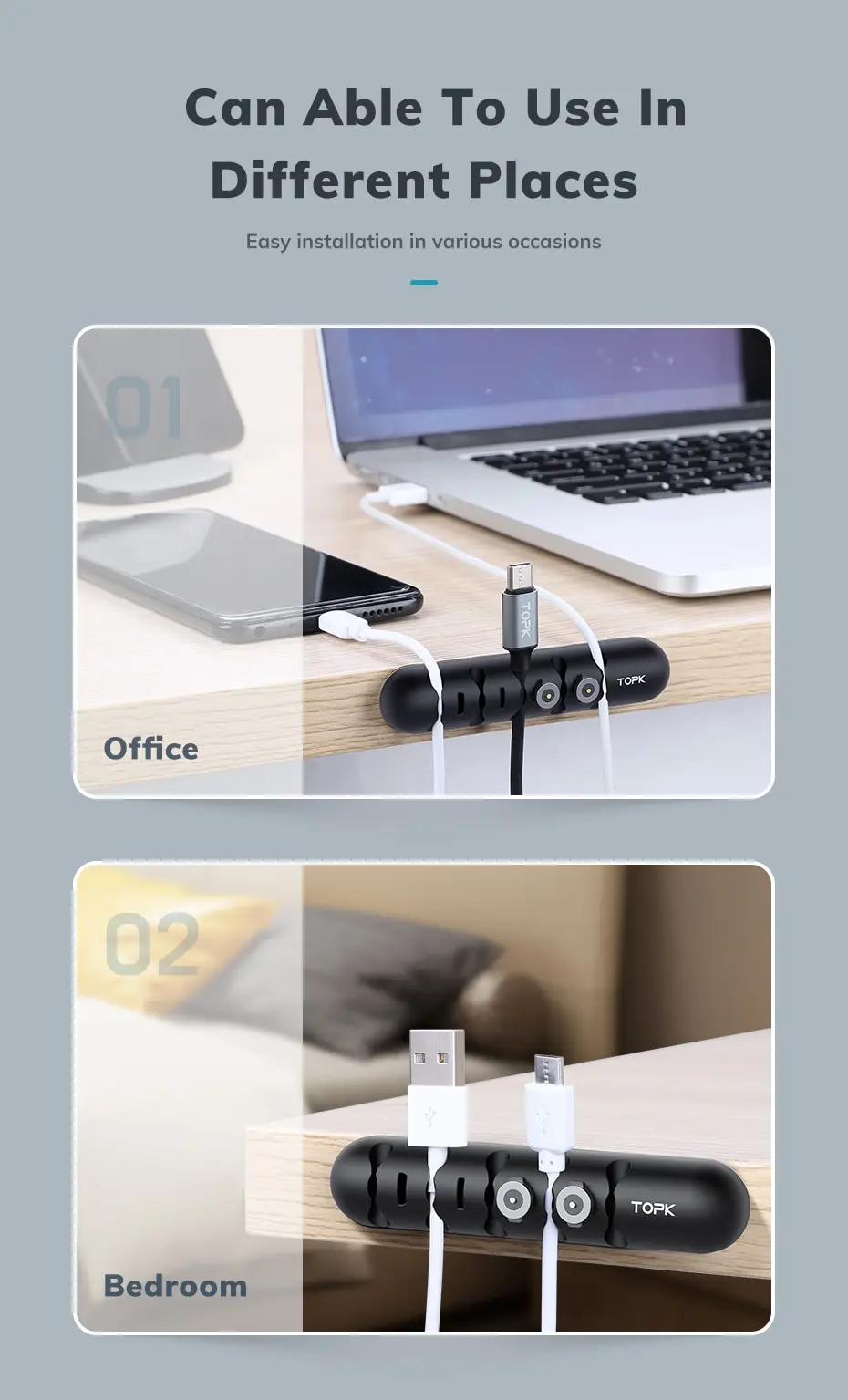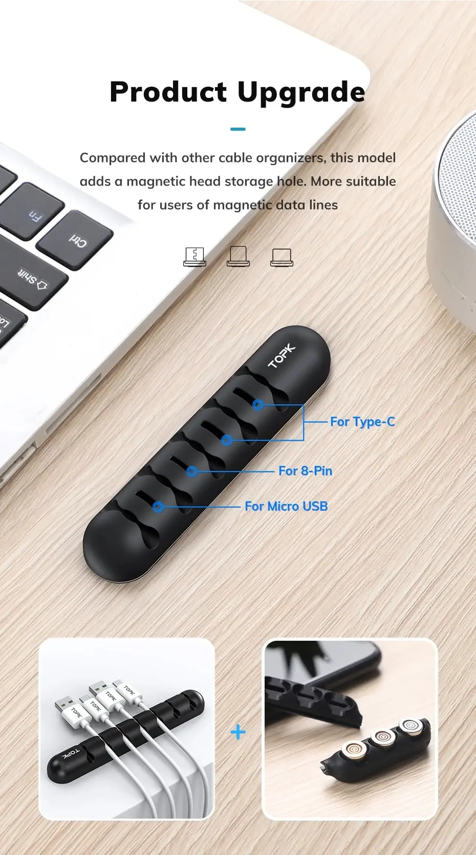 Compared with other cable organizers. this modeladds a magnetic head storage hole. More suitable,for users of magnetic data lines
