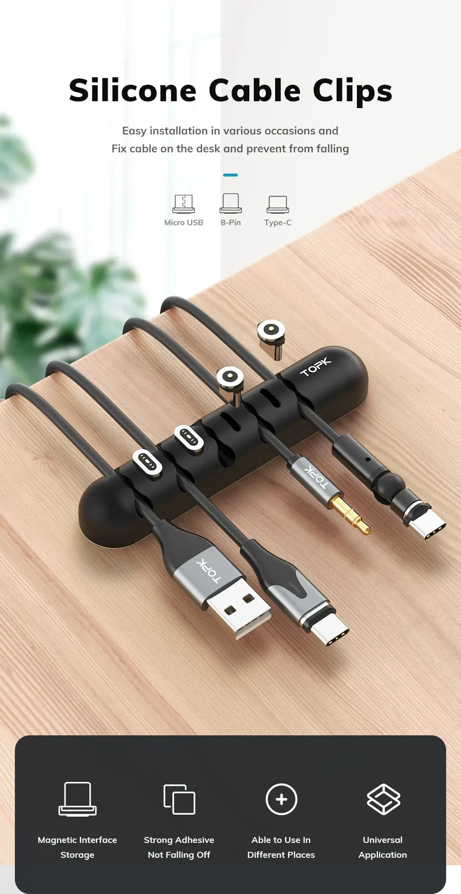 Easy installation in various occasions andFix cable on the desk and prevent from falling