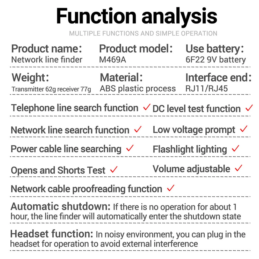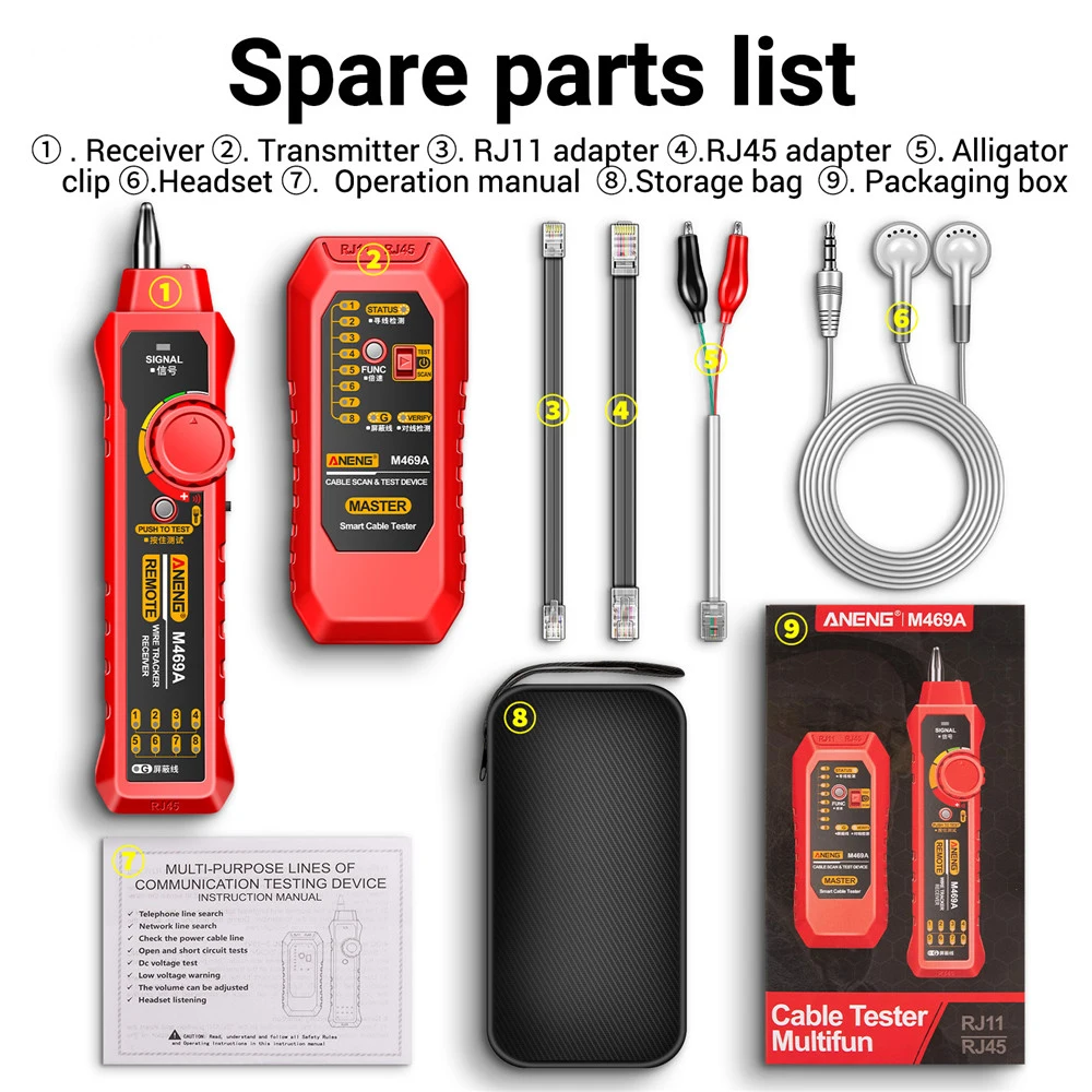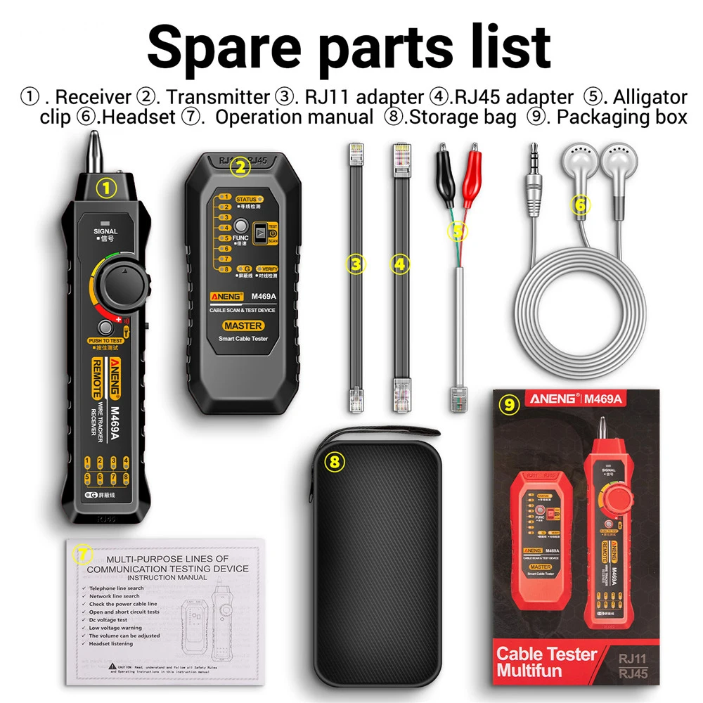Network Cable Tracker M469A Networking Analyzer RJ45 RJ11 Telephone Line Network Wire Detector Tracker Measure Cables Tool