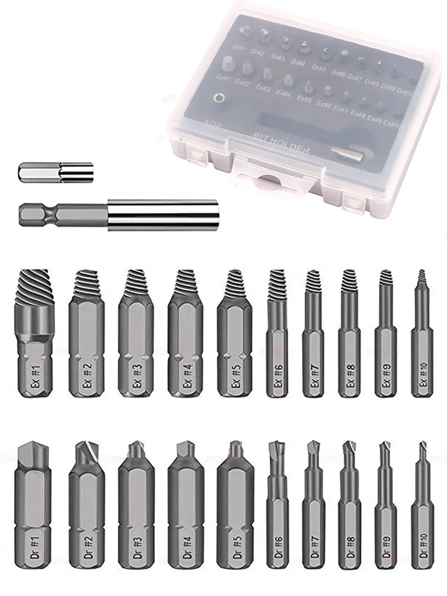 1 Set(20 x Damaged Screw Extractor, 1 x Magnetic Extension Bit Holder, 1 x Socket Adapter)
