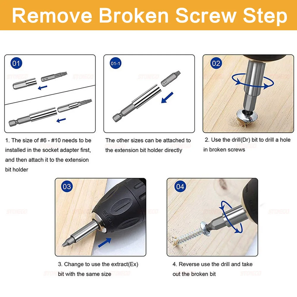 2. The stripped screw extractor set is included two extension bit holder. Can remove in one step, do not need to conversion the extractor or adjust the chuck.