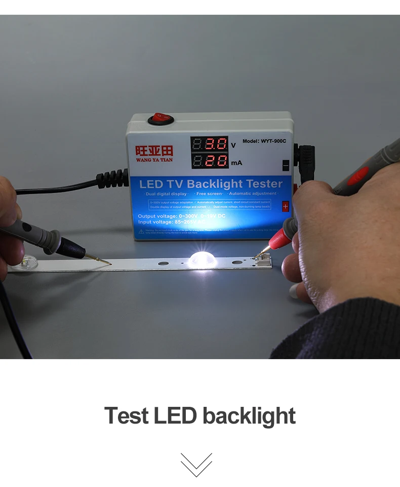 Discover the cutting-edge LED TV tester with its unique features. This compact device offers automatic voltage regulation and a short-circuit protection feature. Effortlessly troubleshoot LED strip faults without the need to dismantle the screen, ensuring stable performance.