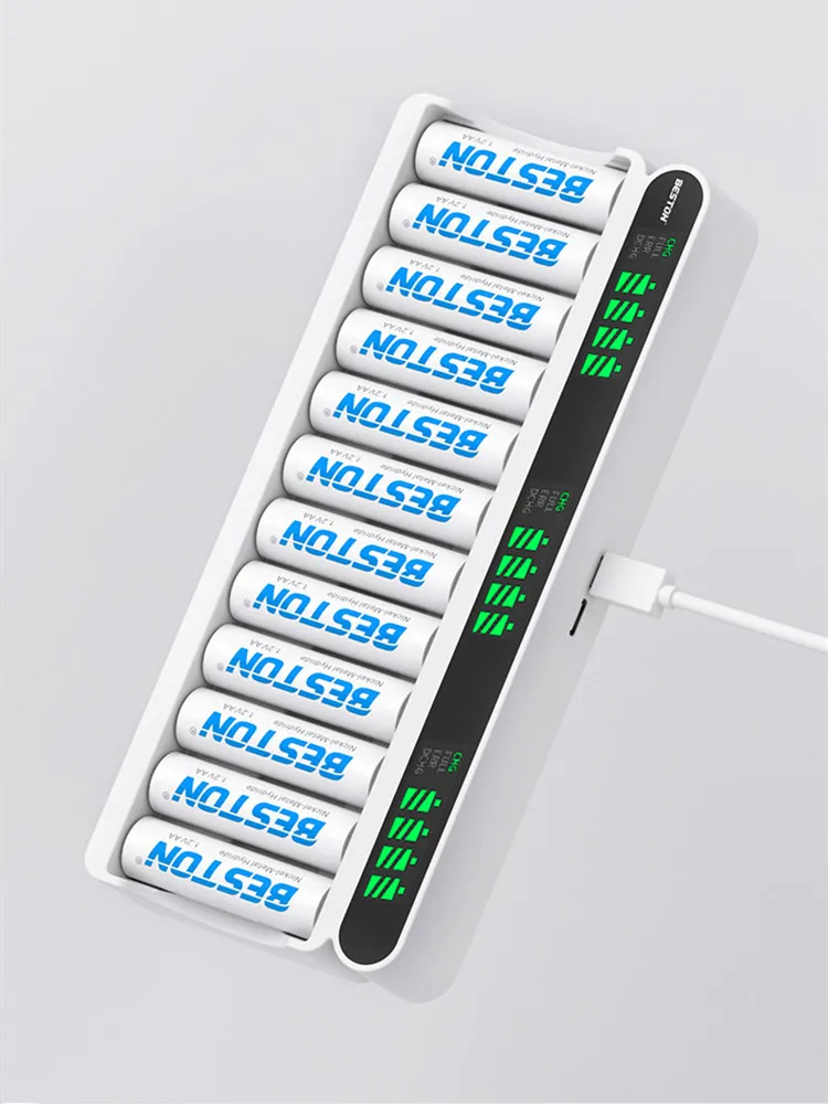 AA AAA battery charger 12 bay for NiMH NiCD rechargeable batteries can charge any quantity in any slot. Single, double or triple ones can be charged, and not necessary to put them in neighboring slots. Besides, you can also mix charge AA and AAA batteries, as long as they are NiMH or NiCD batteries