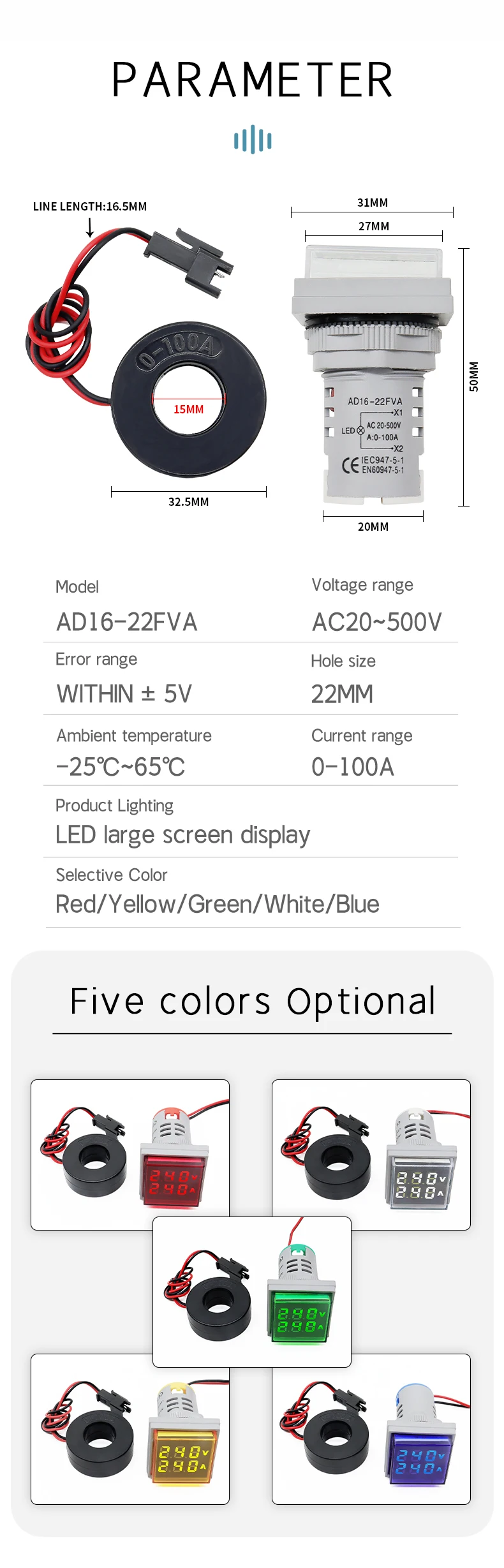 1PC Square LED Digital Voltmeter Ammeter AC20-500V 0-100A 110V 220V Voltage Current Meter Voltammeter Volt Amp Tester Detector