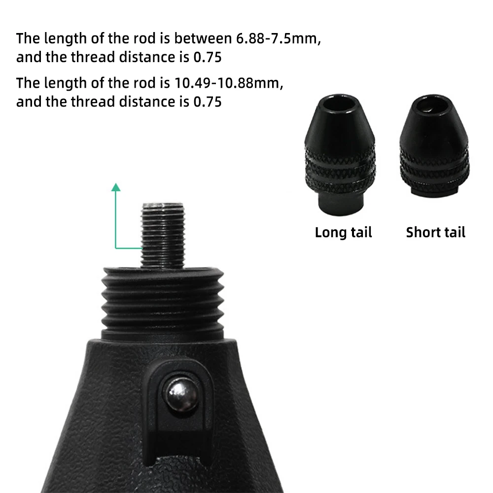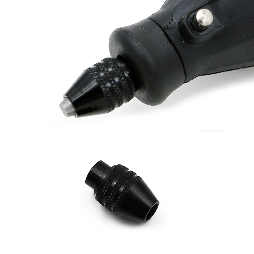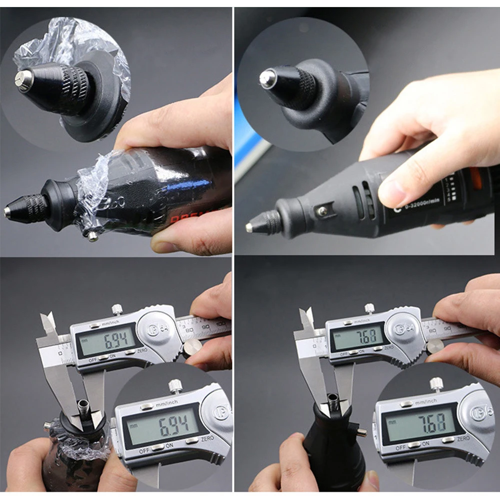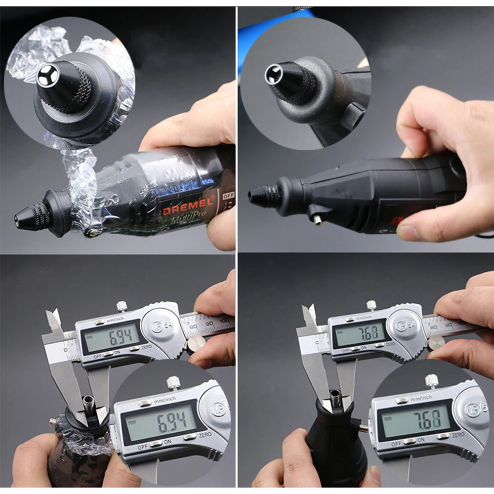 Eliminates need to change collets when swapping between bit sizes.Twist-to-tighten/loosen with heavily-knurled grip means no wrench or key needed.Heat treated & tempered high-carbon steel for durability; rust-resistant black oxide finish.Corded Rotary Tools without changing collets.It accepts all accessory bits with 1/32 and 1/8 shanks.Specification: 4 types for choice. Please check the size photo for reference.