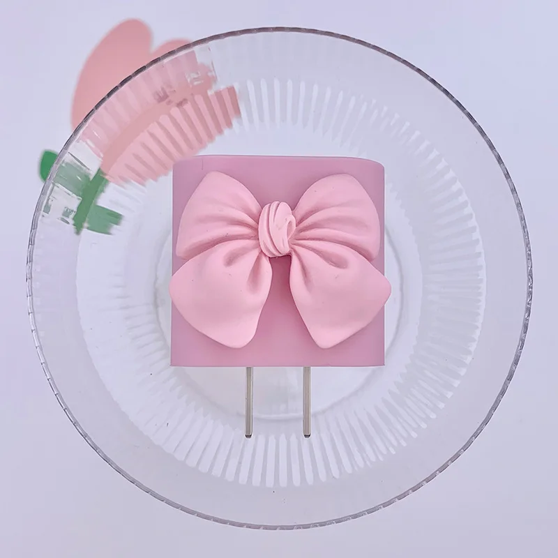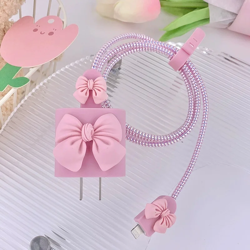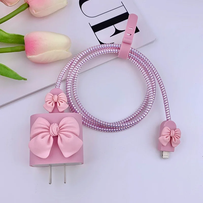 New Cute 3D Bowknot Protector For iphone 12 13 14 18 20W Original Charger Protection Cover Spira Data Line Winder Accessories