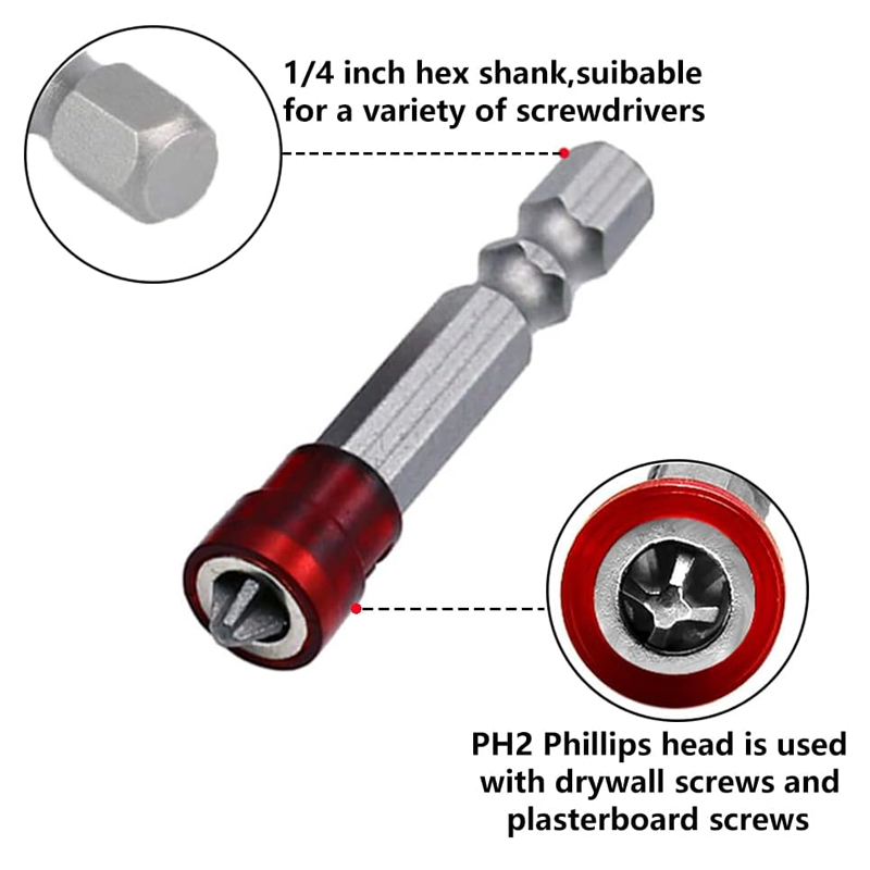 Magnetic Screwdriver Bit PH2 Cross-head 1/4 Inch Hex Shank Screwdriver Holder Ring for House Working Electric Screwdriver Kit