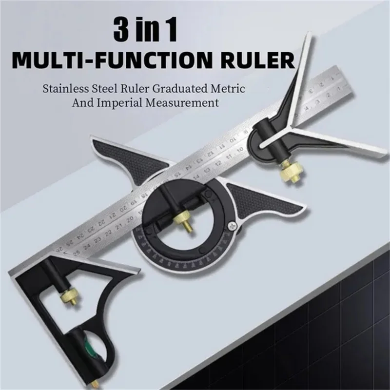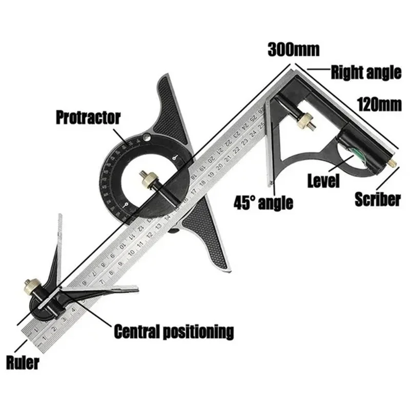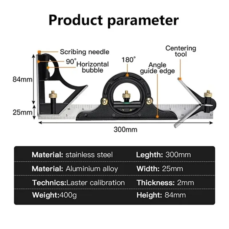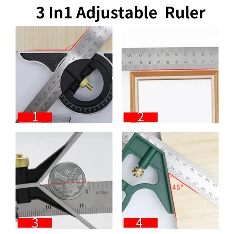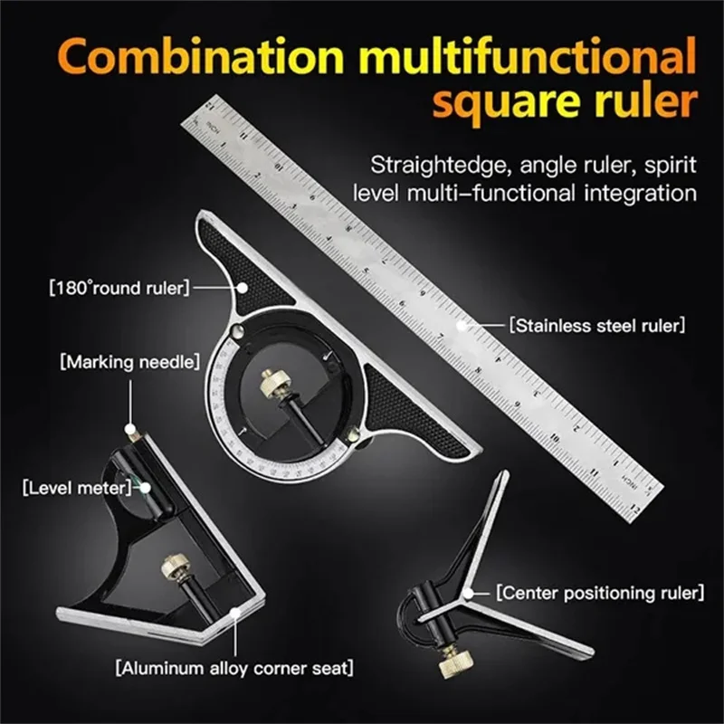 Square Right Angle Ruler Protractor Movable Square Woodworking Angle Ruler Stainless Steel Measuring Tools Multi Combination Set