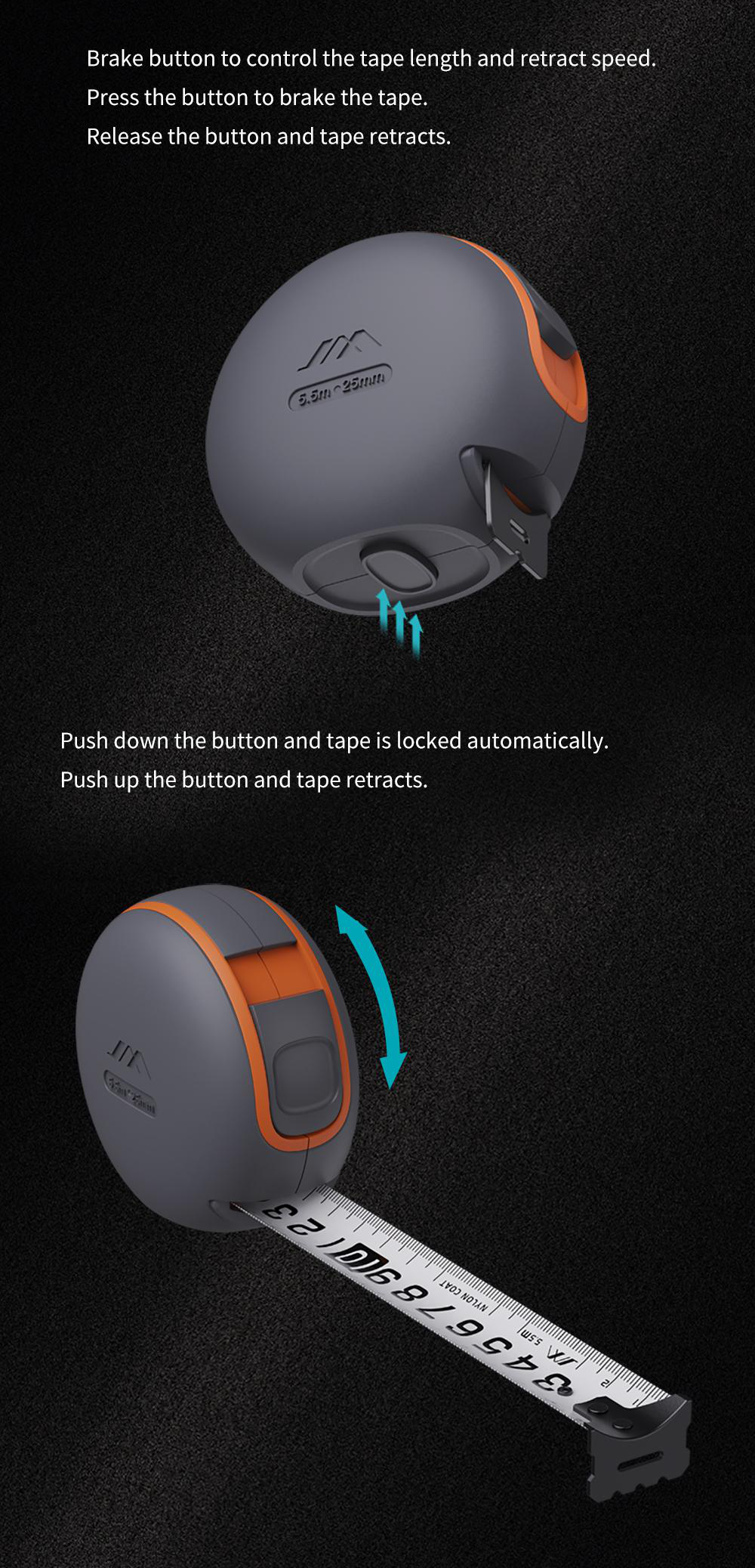*The tape can be locked for extra tension or unlocked for smooth,controlled retraction.