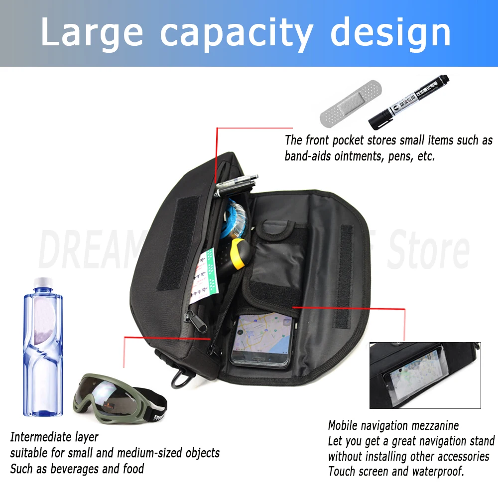★Purpose: A functional handlebar bag specially developed for motorcycle models, In order to allow the mobile phone to be charged on the move, the bag has a waterproof cable inlet