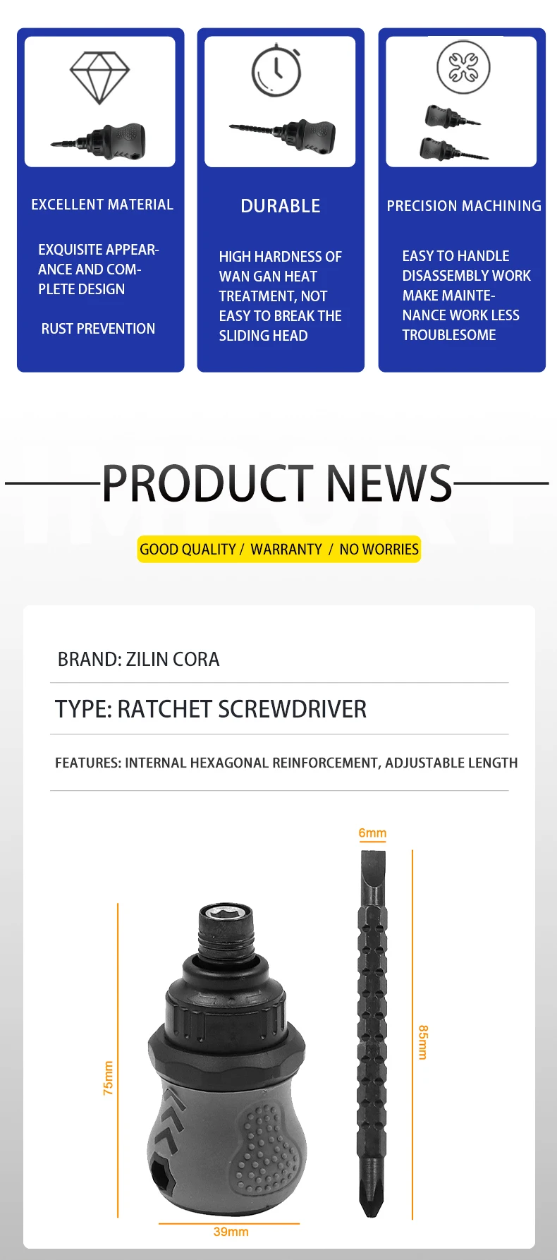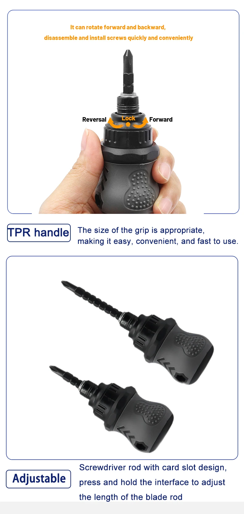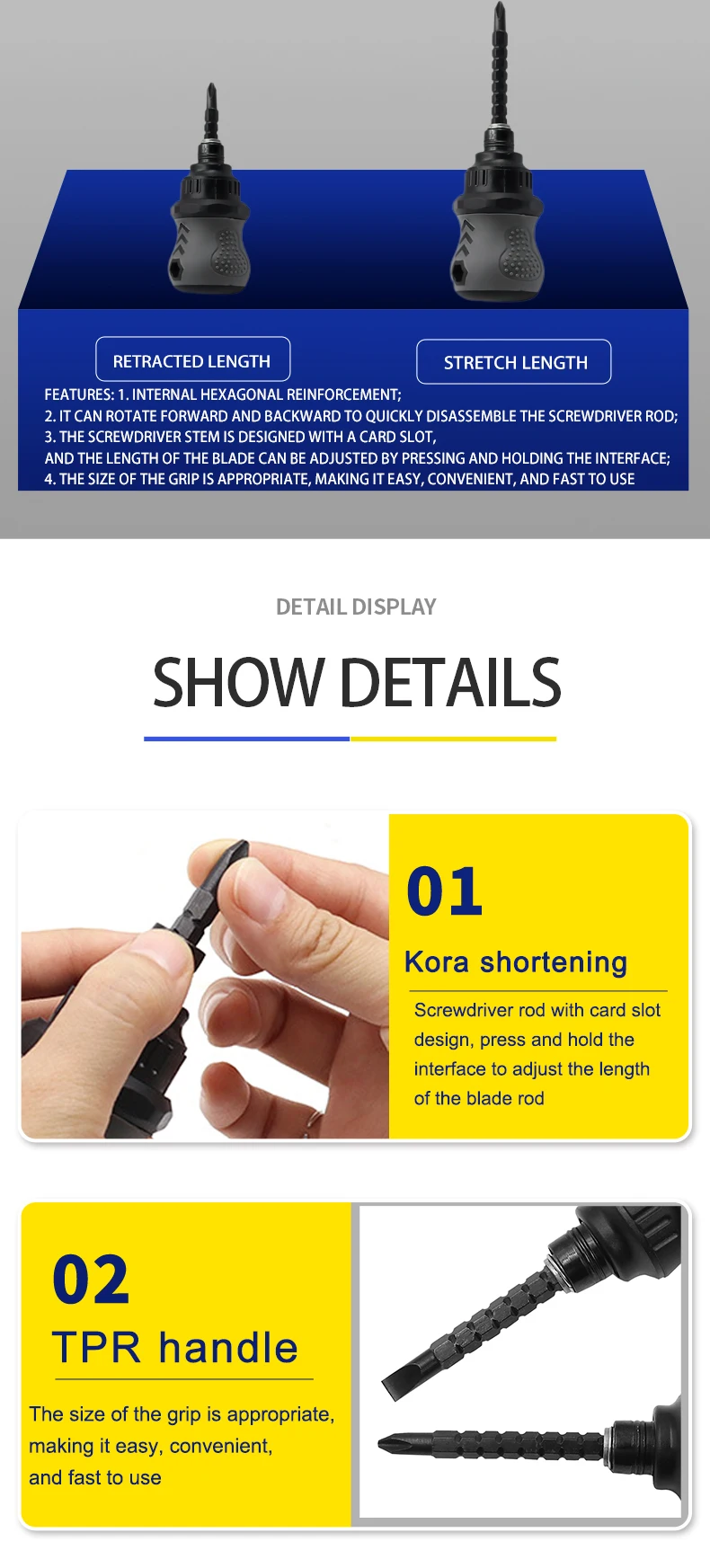 Short Radish Mini Screwdriver Fat Ratchet Screwdriver Telescopic Dual-purpose Cross Adjustable Screwdriver