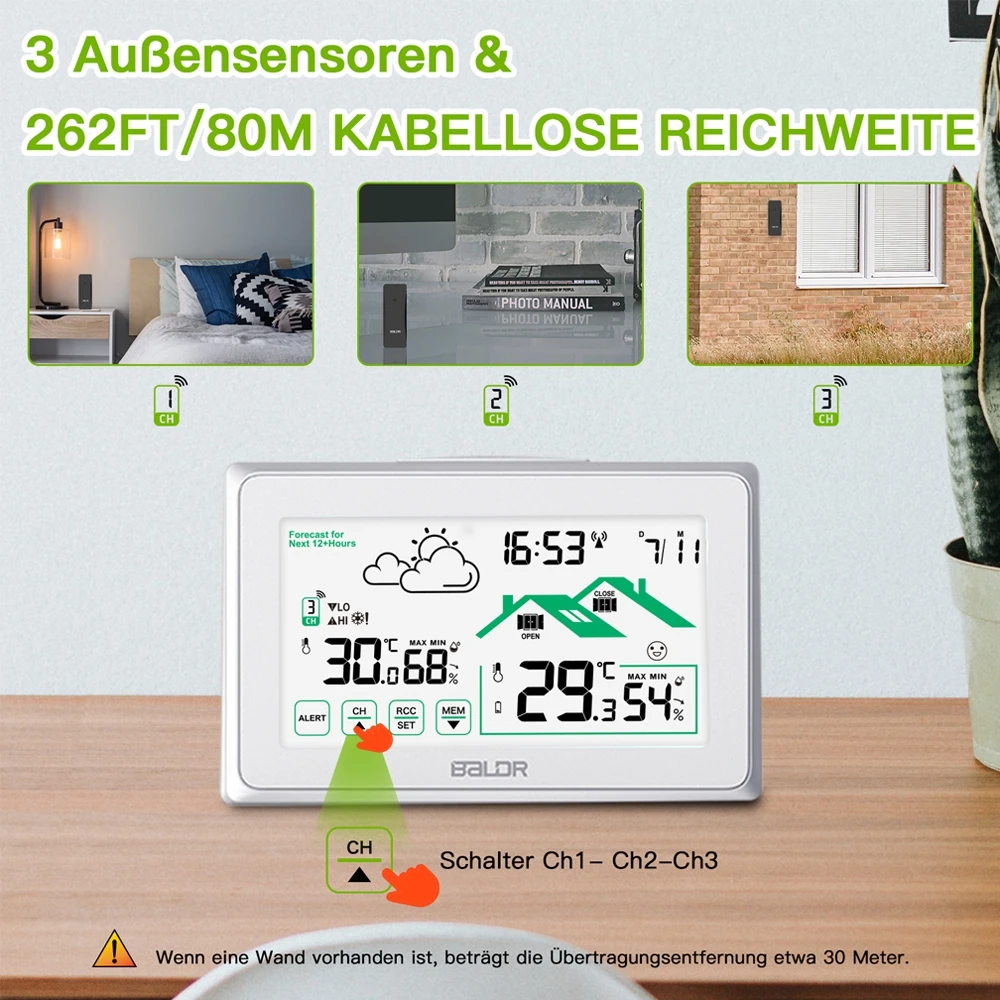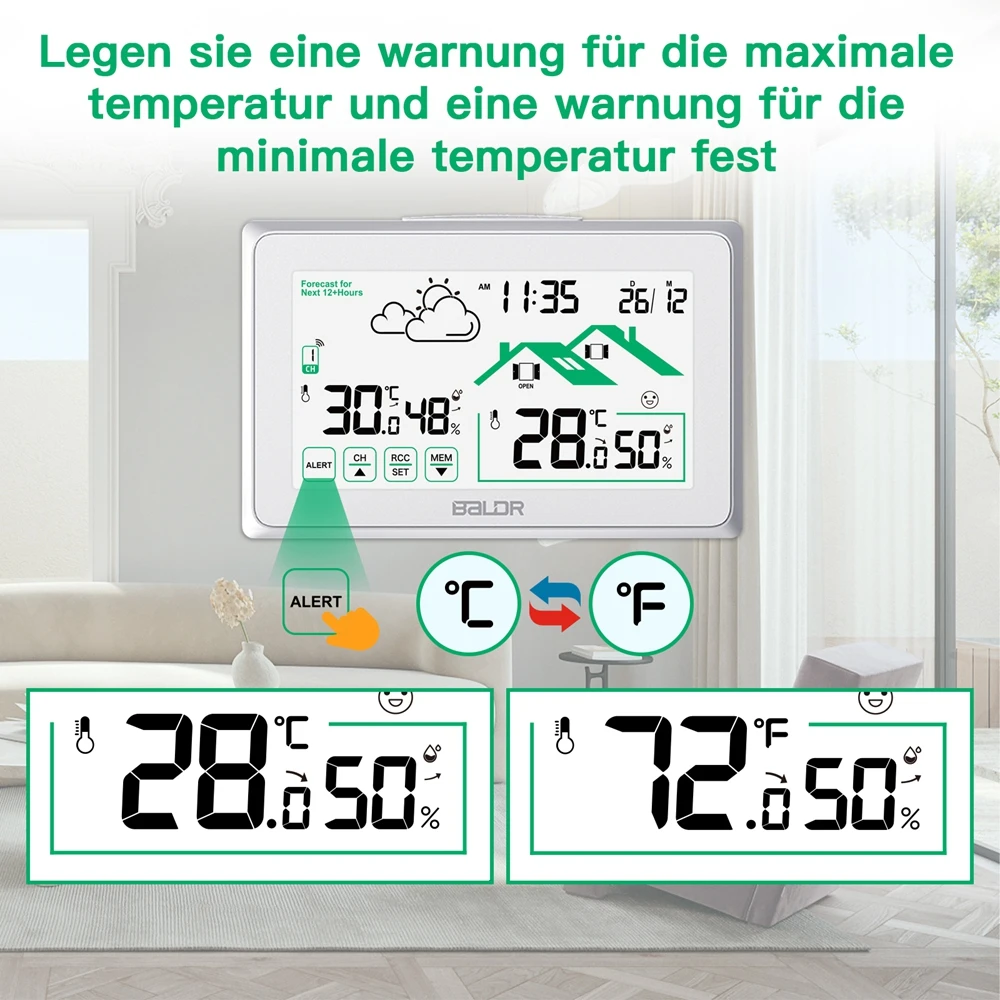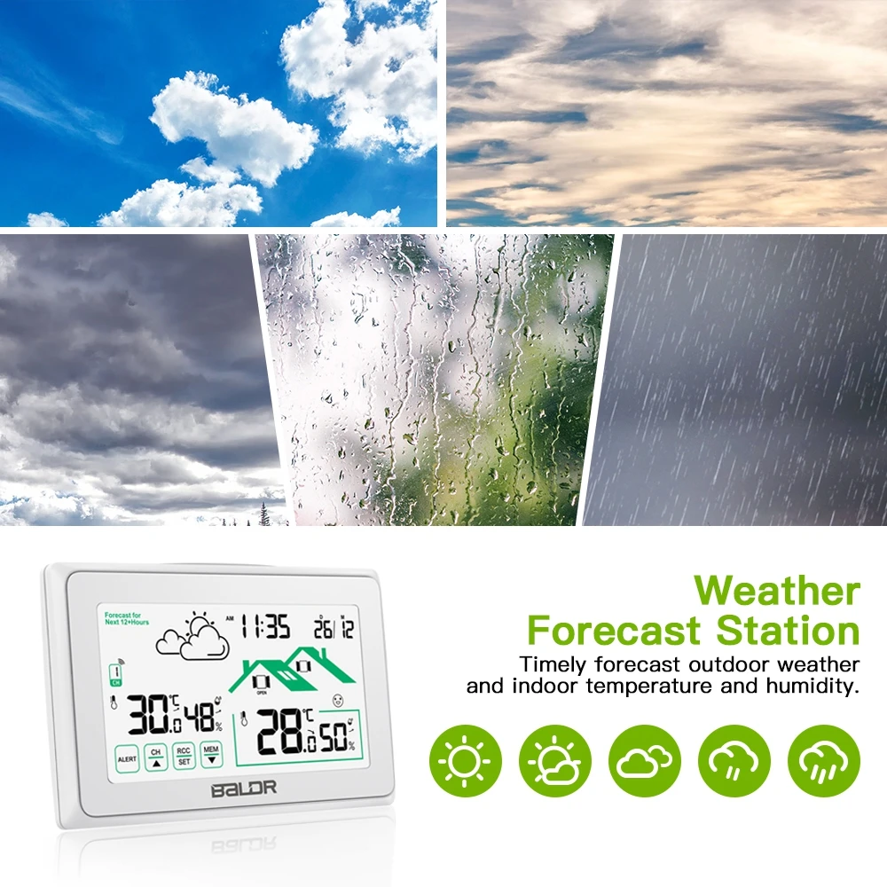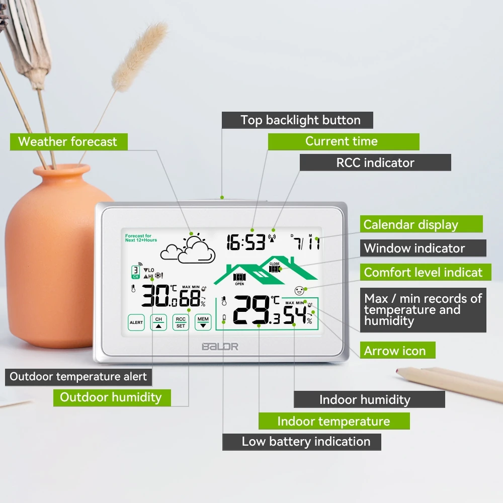 Baldr Smart Wireless Weather Station Digital LCD Hygrometer Thermometer Record RCC Alarm Clock Calendar Trend Forecast Sensor