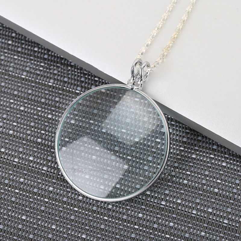Wearable glass necklace is composed of zinc alloy chain and glass optical magnifier lens, non toxic and safe, sturdy and durable.