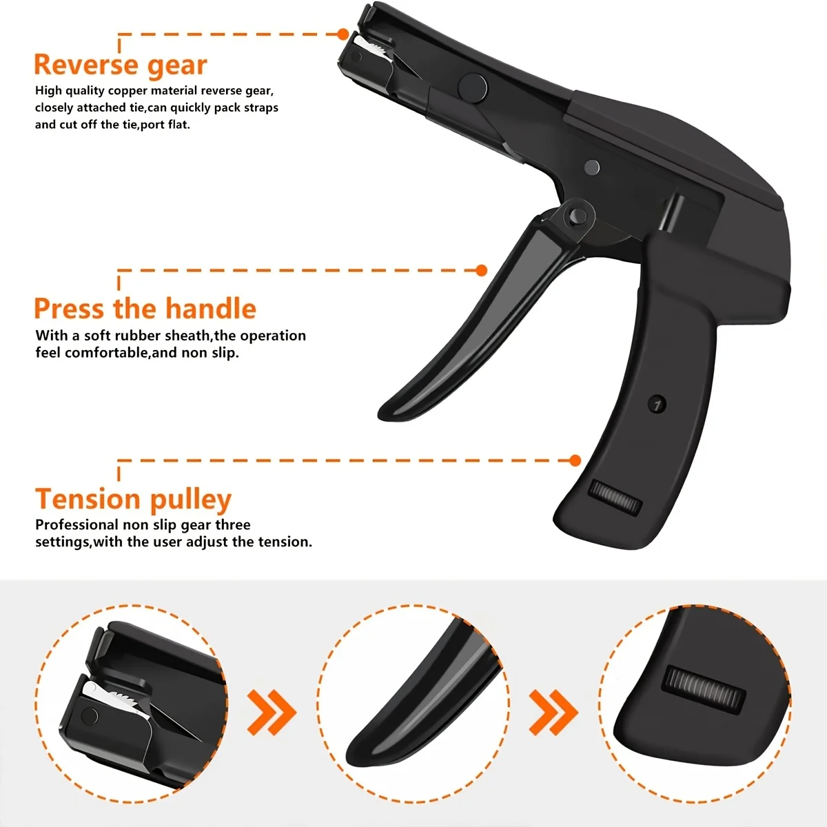 Cable Tie Tool,Fastening Cable Tie Gun and Flush Cut Zip Tie Gun with Steel Handle for Nylon Cable Tie