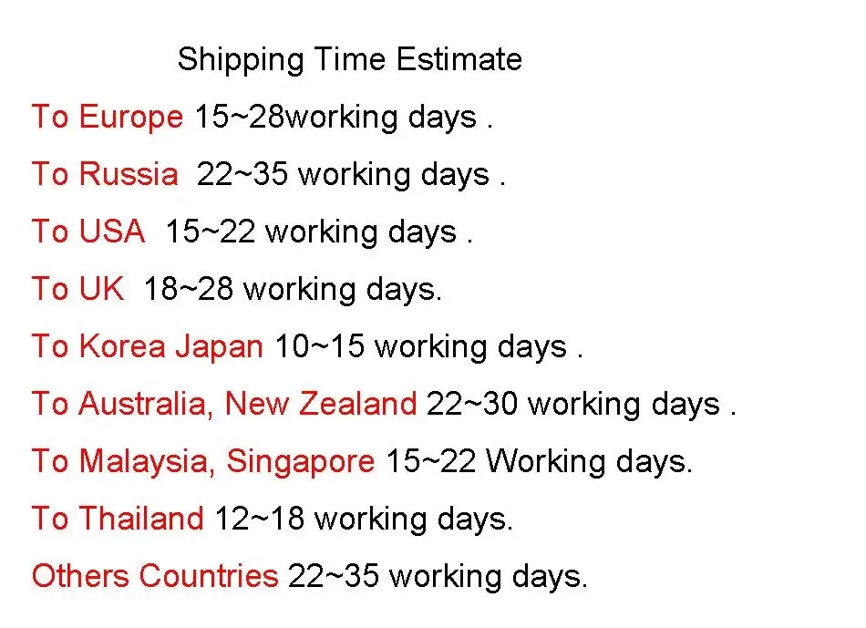 All Package will shipping out in48hours except holiday & weekend day.