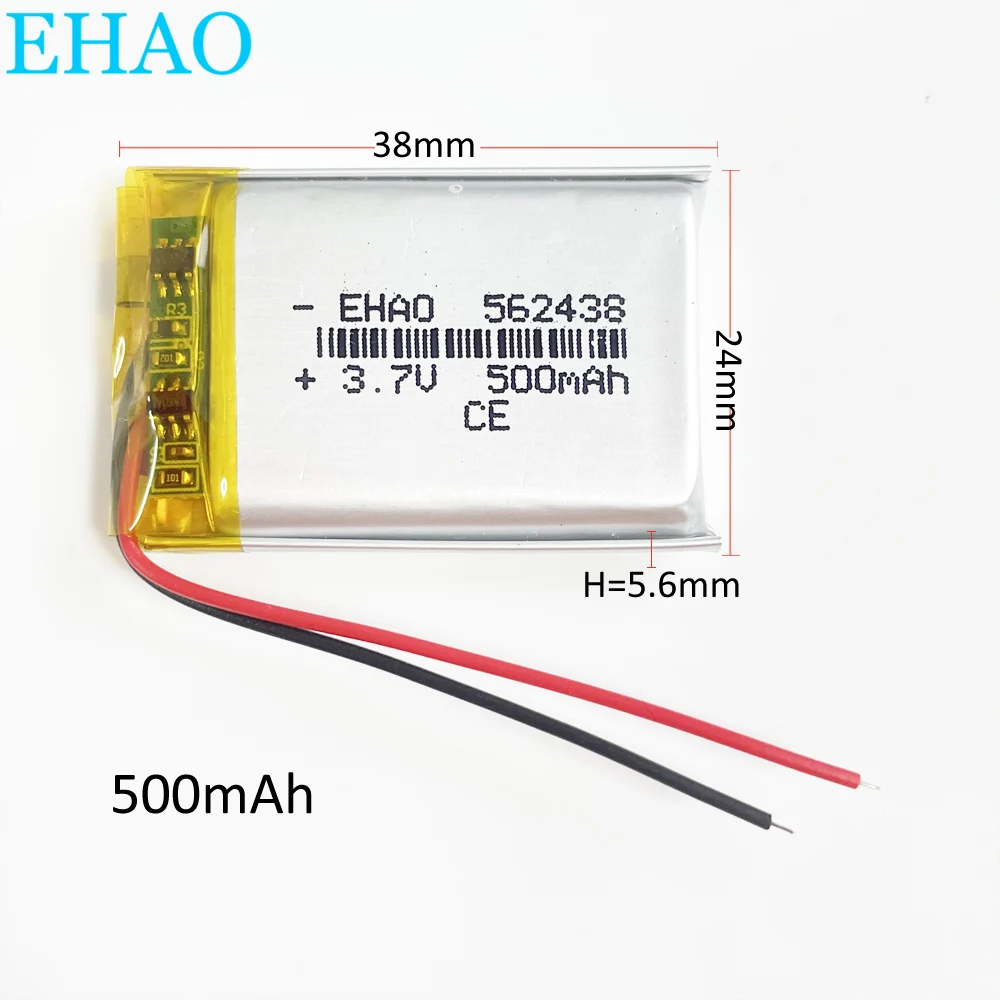 3.7v 500mAh Lithium Polymer Li-po Rechargeable battery.562438.