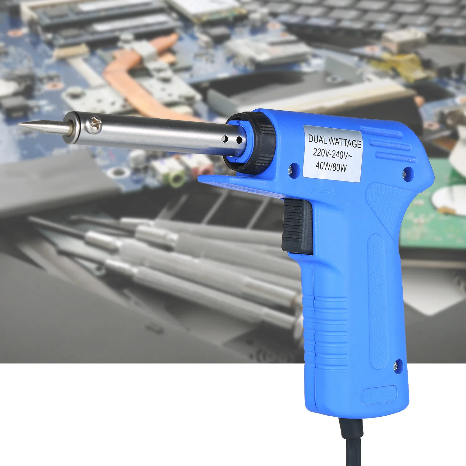 Features:- ABS Shell: High hardness of surface & high temperature resistant & flame retardant & light & easy to clean.- Humanity Design: Force controllable handle, easy to use.- Focused Design: Help users improve the efficiency.- Power Adjustable: 40W/80W, switch at any time.- Double Power: Fast heating up to improve work efficiency.Specifications:Material: Metal+ABSColor: BluePlug Type: EUInput Voltage: 220V-240V, 60HzPower: 40W/80W (Switchable)Lead Content of Solder Wire: 37%Item Size: Approx. 17*10.5*2.4cm / 6.69*4.13*0.94inItem Weight: Approx. 121g / 4.27ozPackage Size: Approx. 20*15*2.5cm / 7.87*5.91*0.98inPackage Weight: Approx. 167g / 5.89ozNote:Please allow 1-2cm differences due to manual measurement, thanks.Package List:1 * Electric Soldering Iron1 * Solder Wire1 * Cleaning Cloth