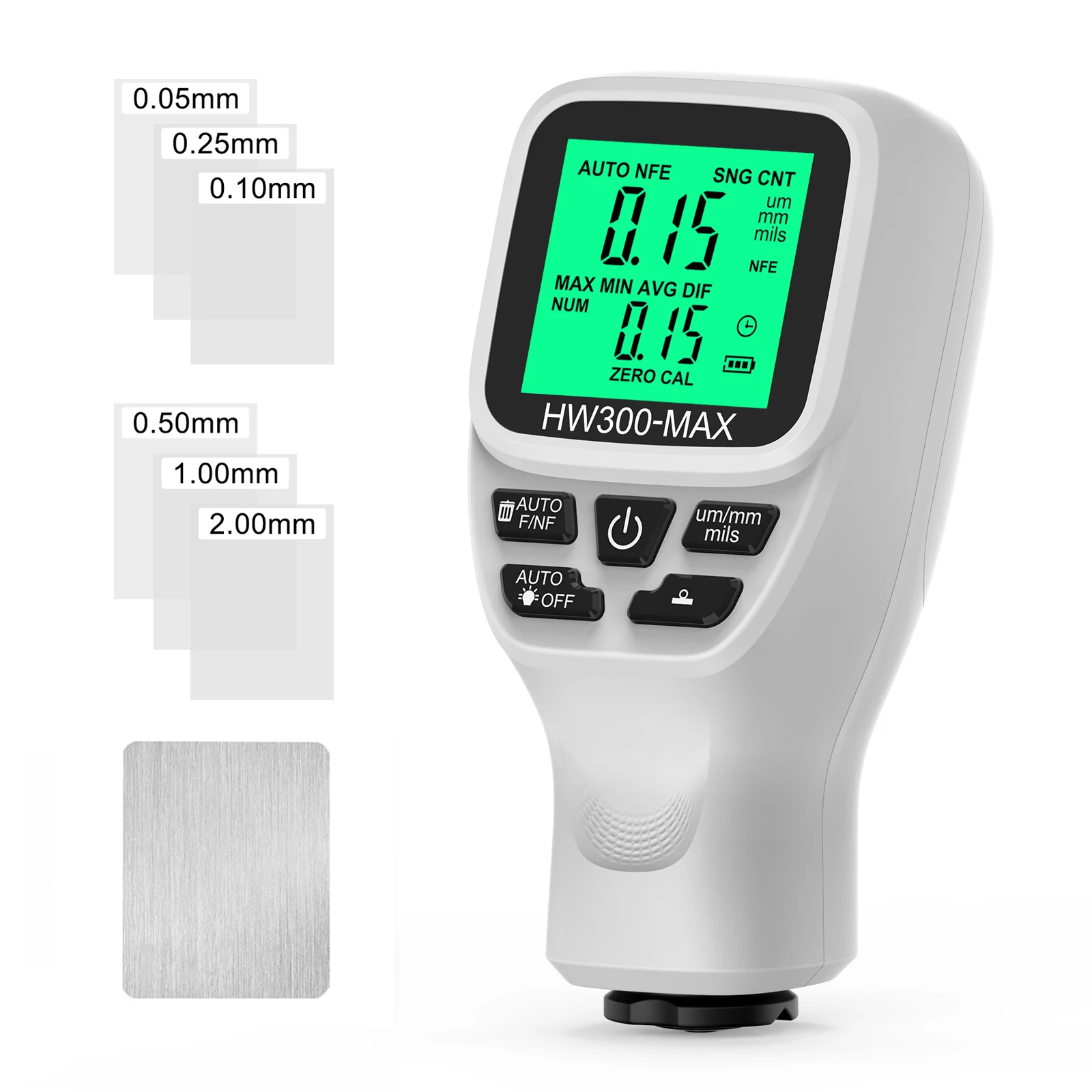 HW300-MAX Car Paint Thickness Gauge 0-2000UM Coating Meter Automotive Coating Thickness Tester Fe & NFe Auto Paint Detector