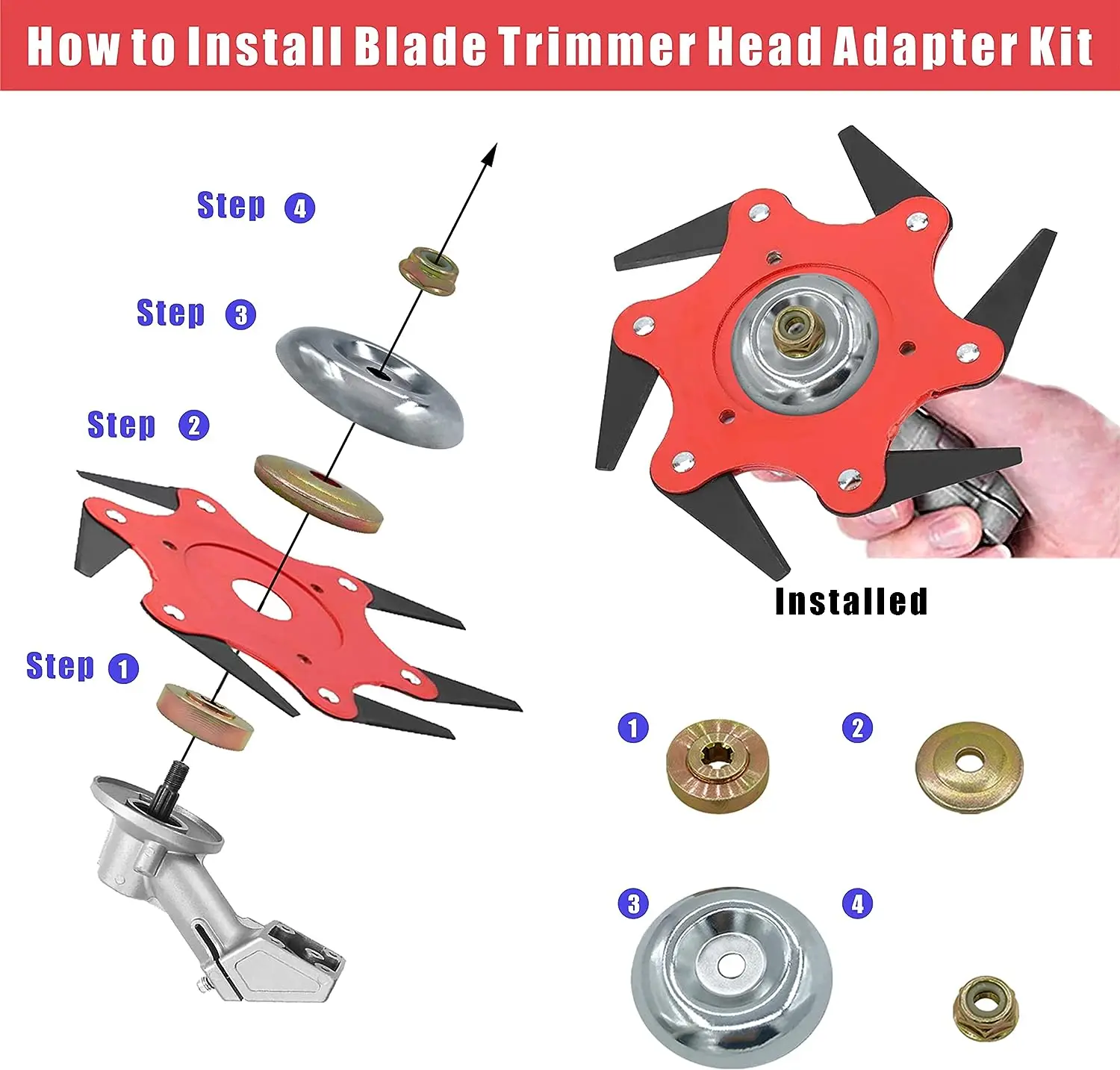 【Easy to Install】You can choose the blade adapter kits that suit you according to the installation steps on the fourth and fifth pages of the product details page. Easy to replace the string spool on the trimmer with the adapter kits.