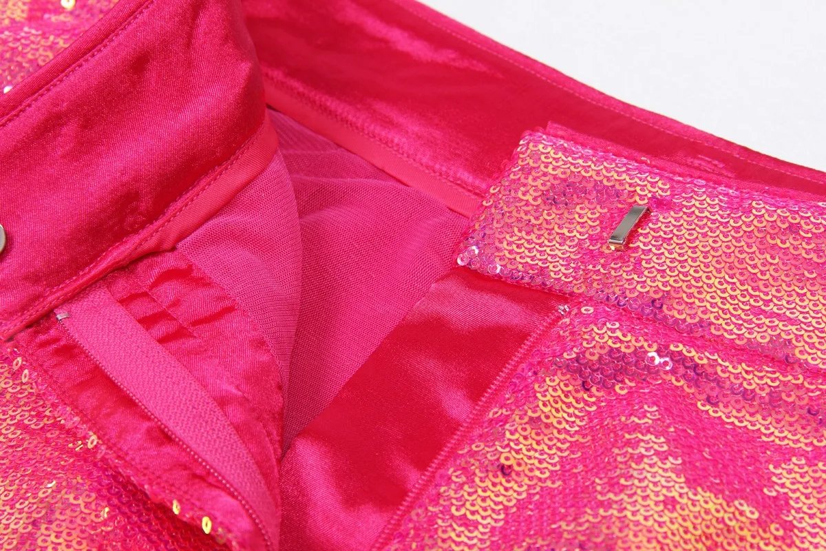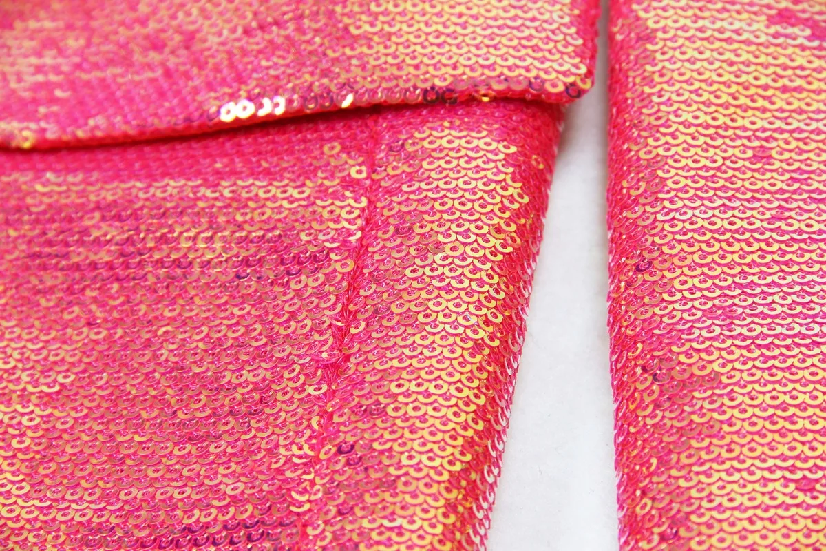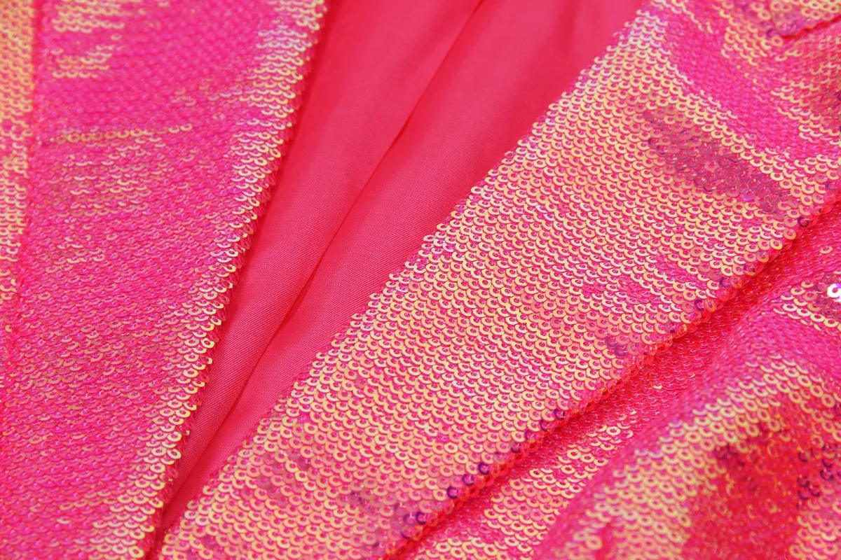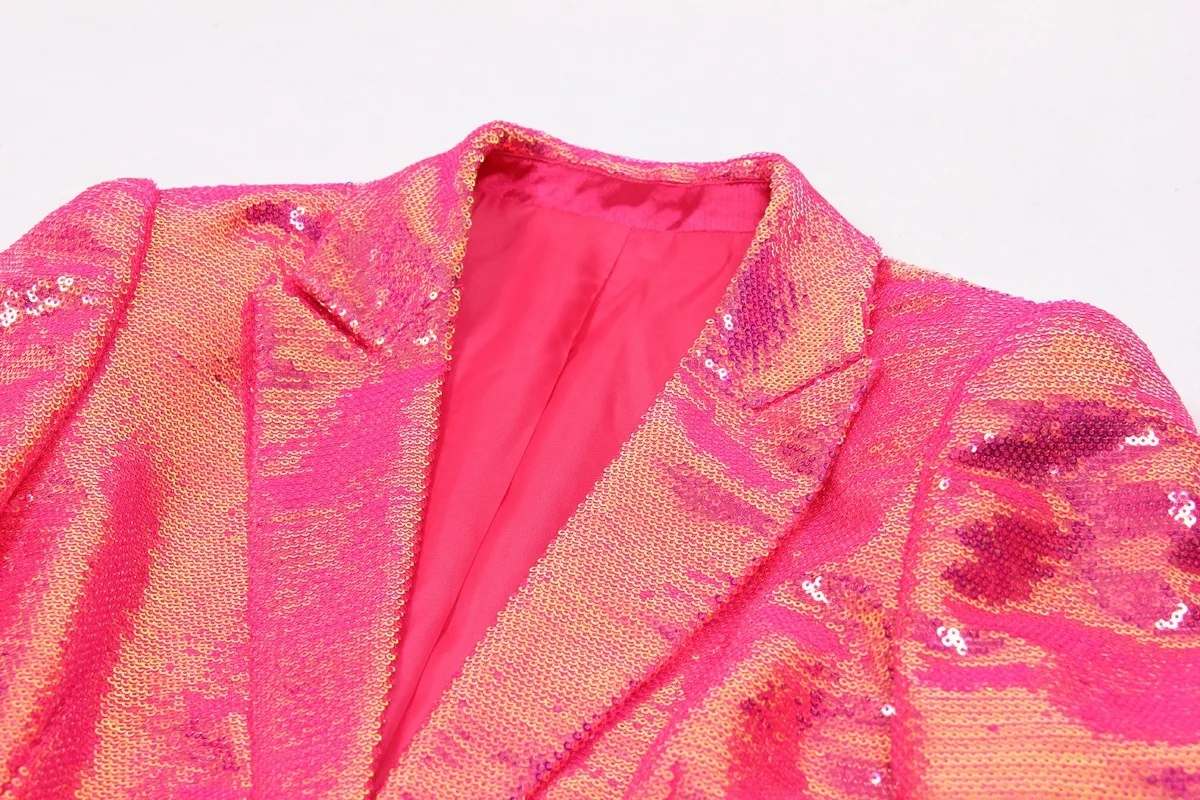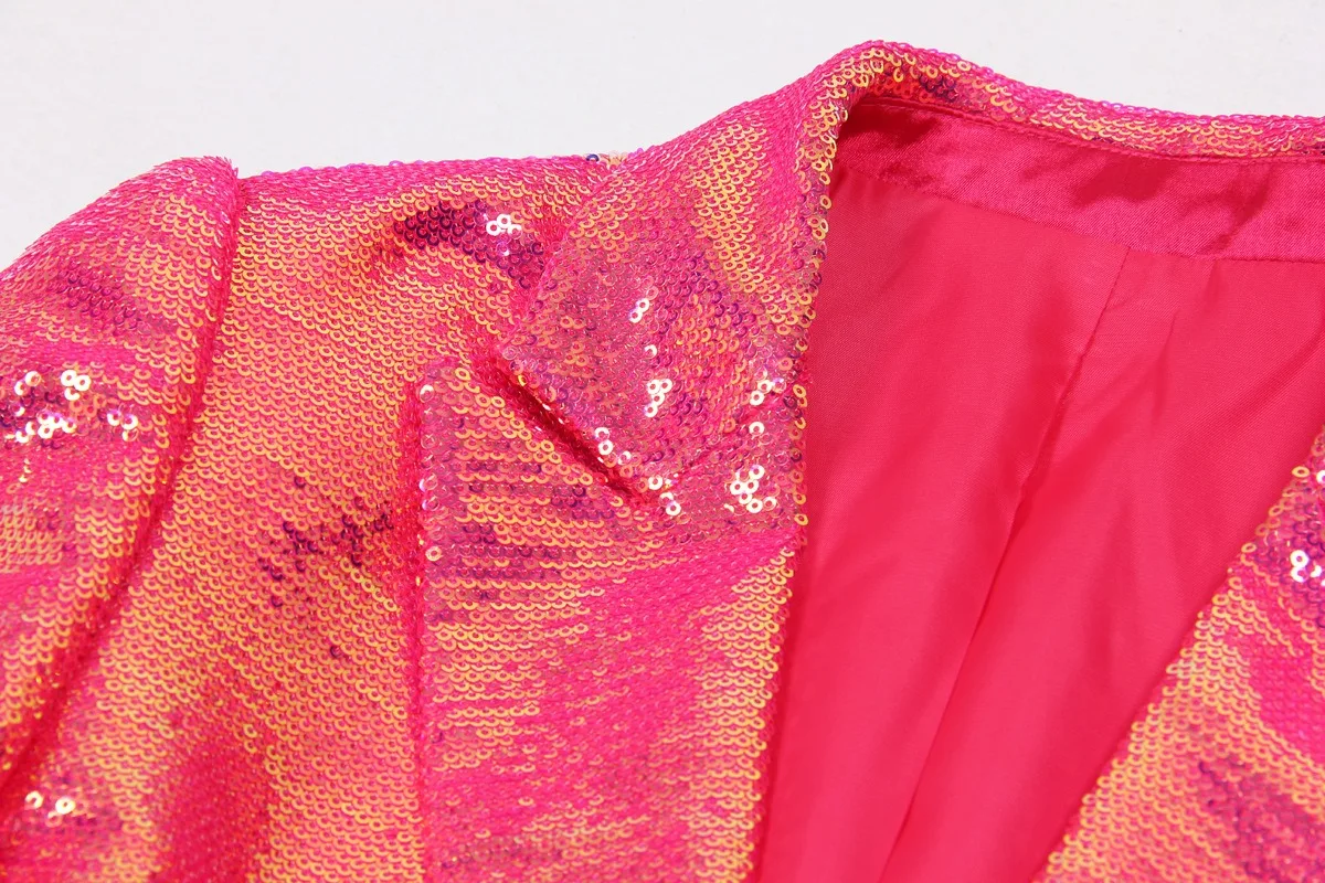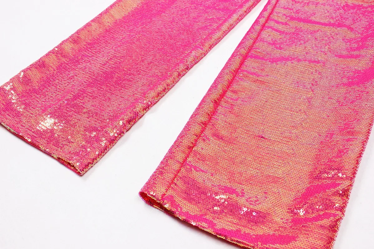 Party Queen Women Shining 2PCS Suits Sequins Blazer Hot Pink Long Wide-leg Pants Two-Pieces Lady Sets Luxury Designing