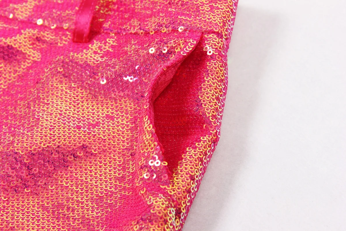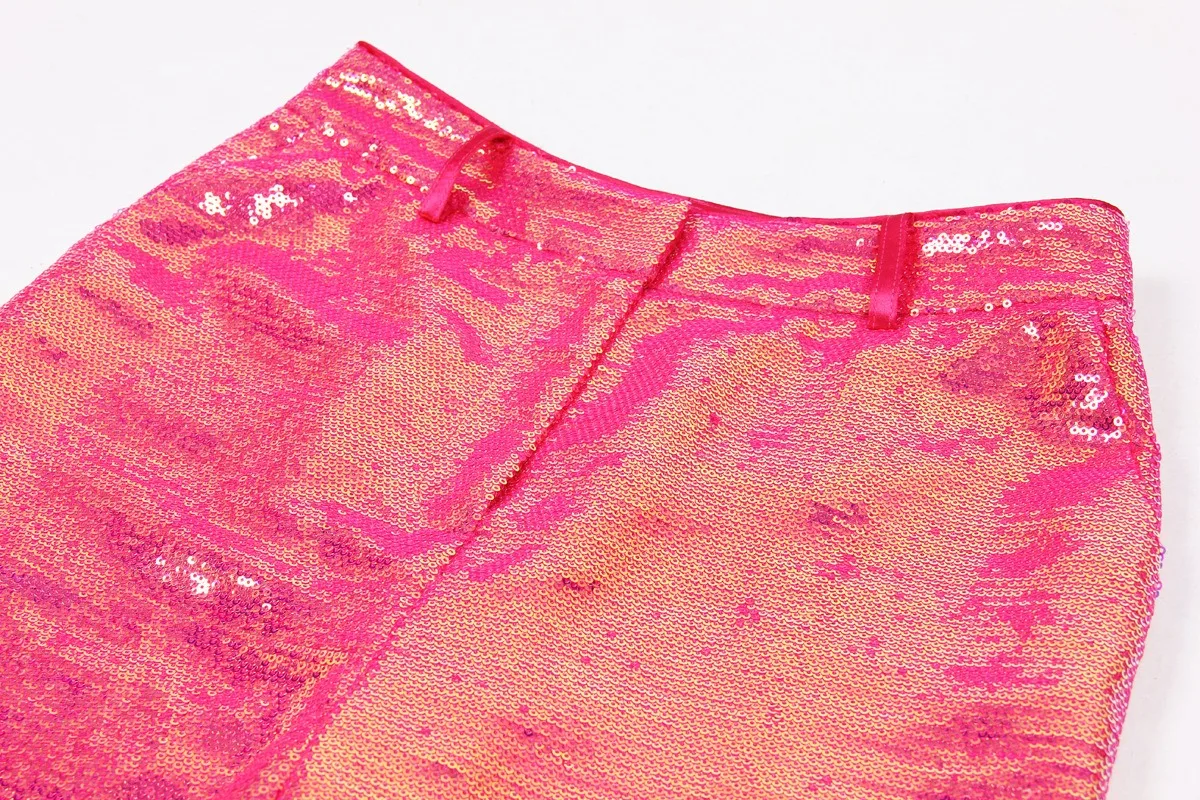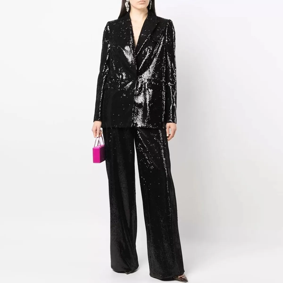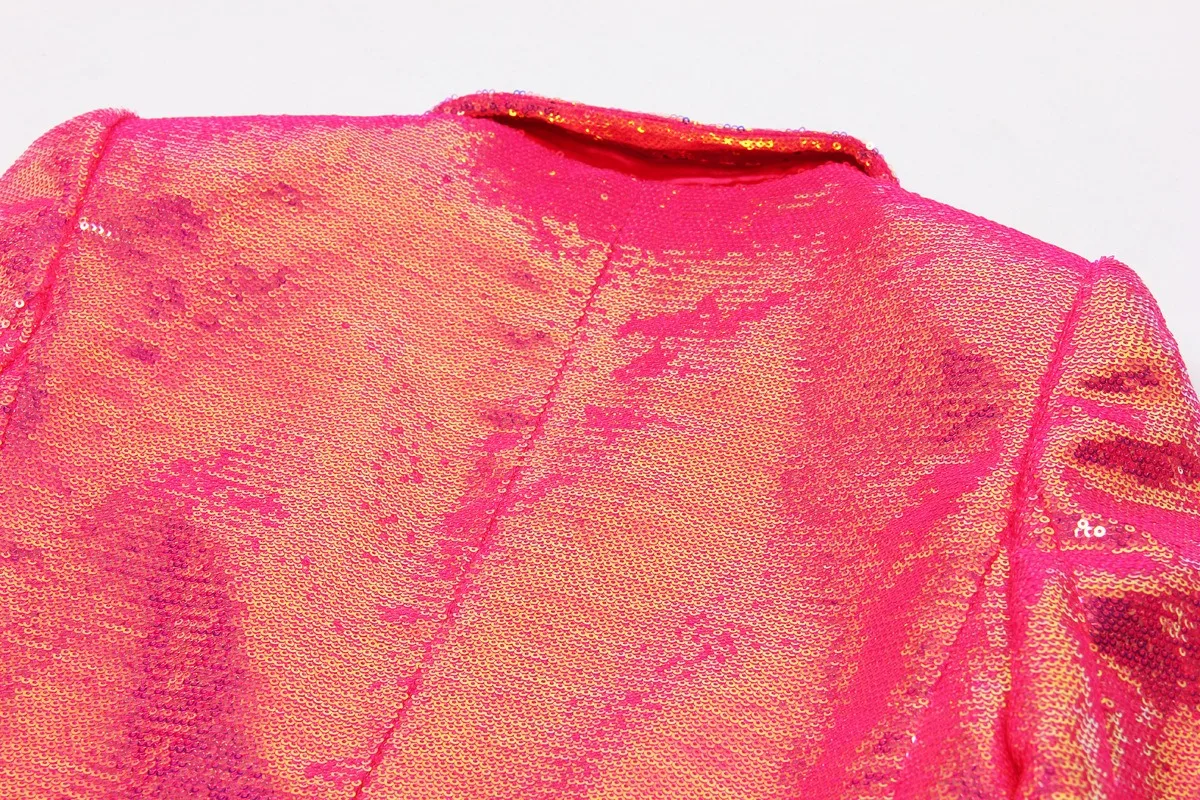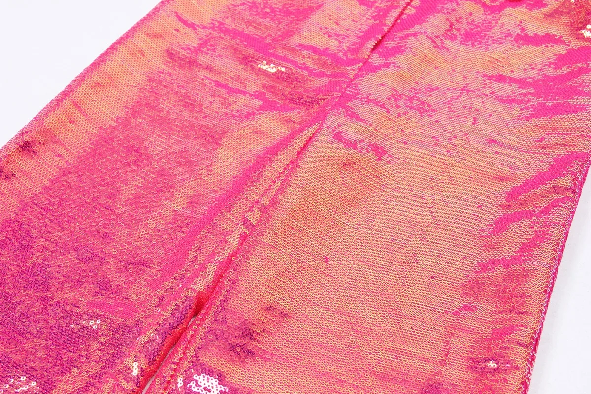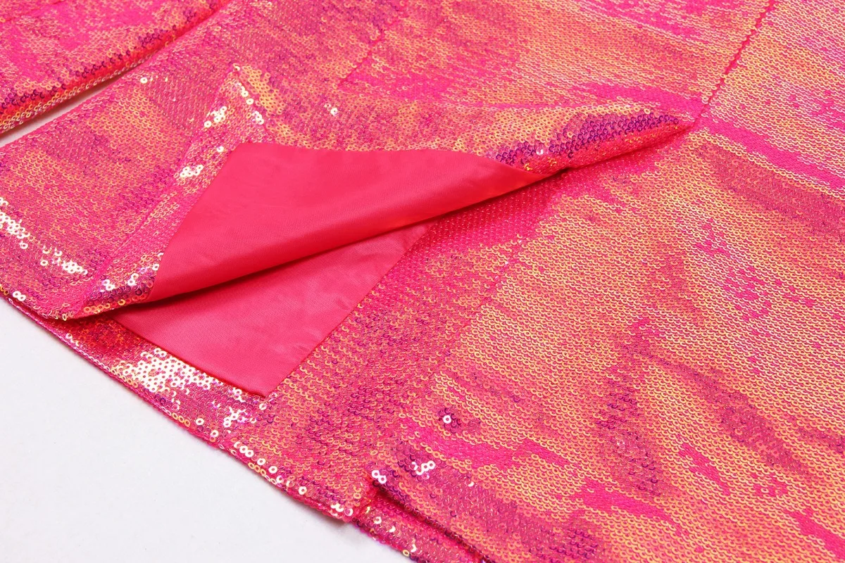 Party Queen Women Shining 2PCS Suits Sequins Blazer Hot Pink Long Wide-leg Pants Two-Pieces Lady Sets Luxury Designing