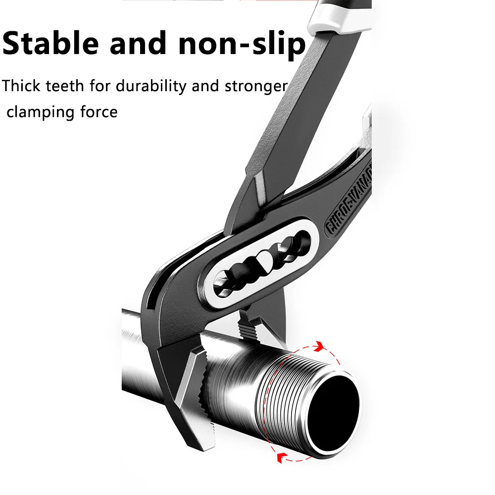 2. Versatile Pliers - Our adjustable pliers are a great addition to any home maintenance or work toolbox. Perfect for plumbers and DIY homeowners: grip, pull, tighten and loosen nuts, bolts, pipes and fittings.