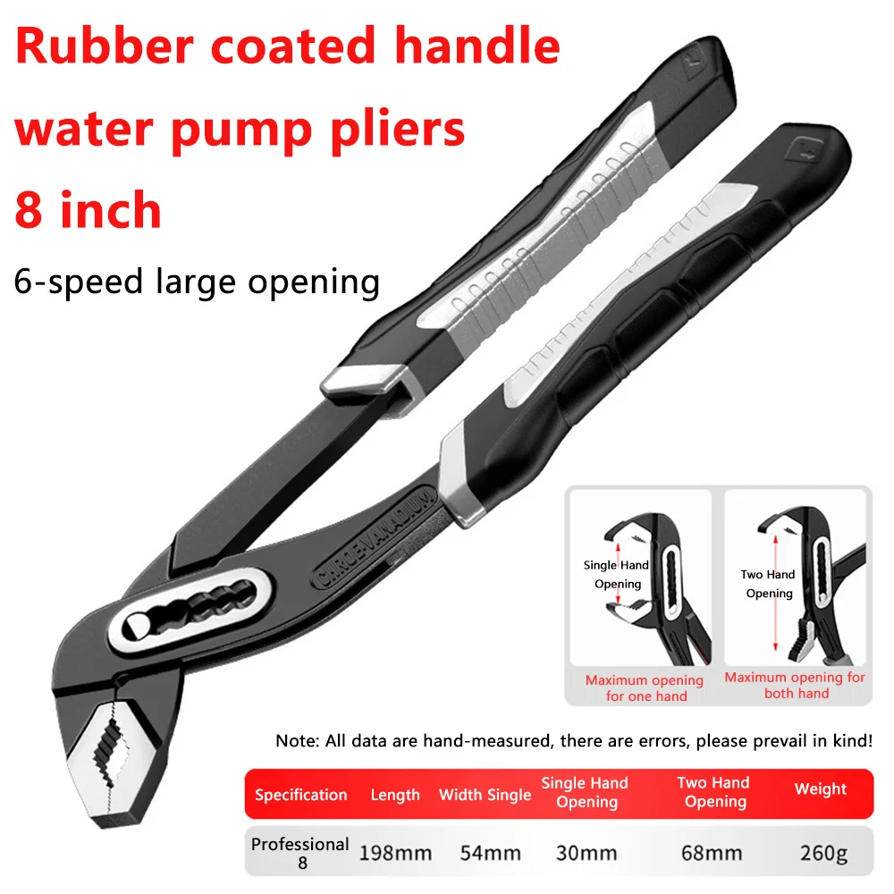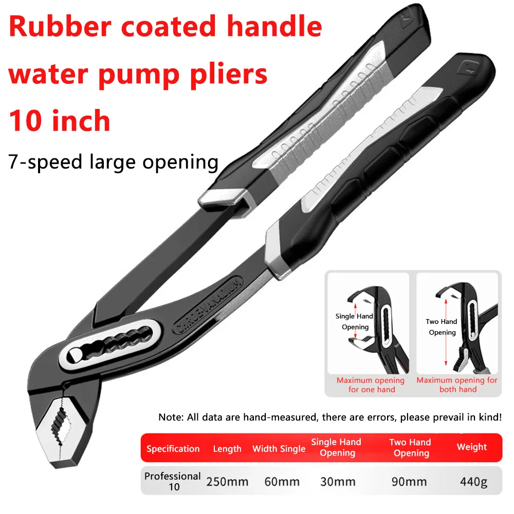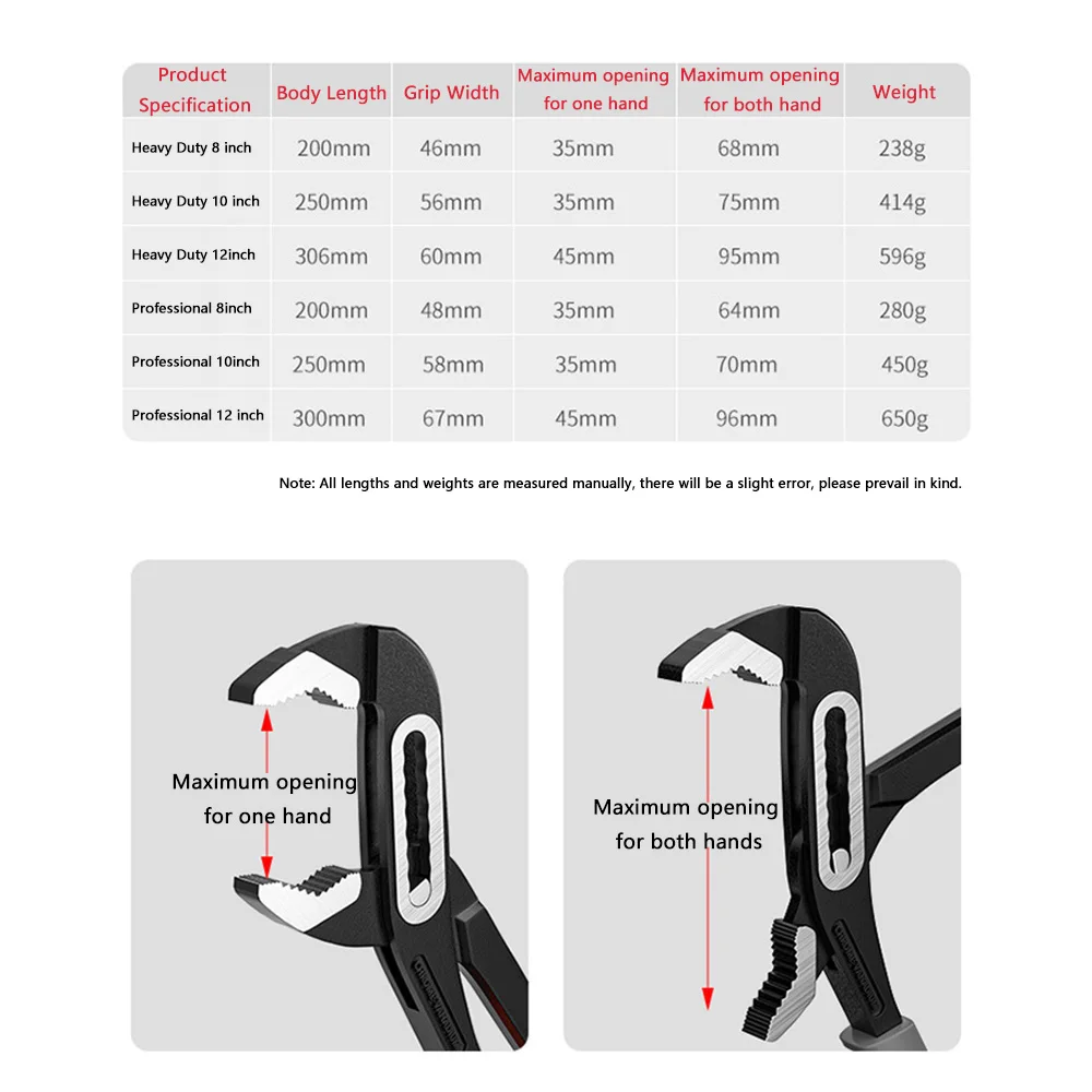 5. What you get - With 8-inch grooved joint straight pliers, 10-inch grooved joint straight pliers and 12-inch grooved joint straight pliers, three different sizes of pliers are available to make your job easier, safer and more efficient.