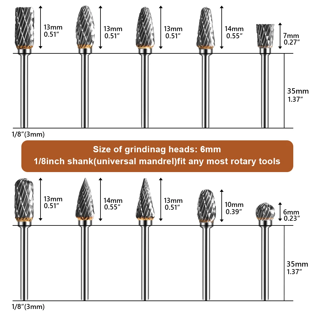Carbide Burr Set Compatible with Dremel Rotary Tool 10Pcs Die Grinder Bits Rotary File Rasp with 1/8" Shank Tool Accessories