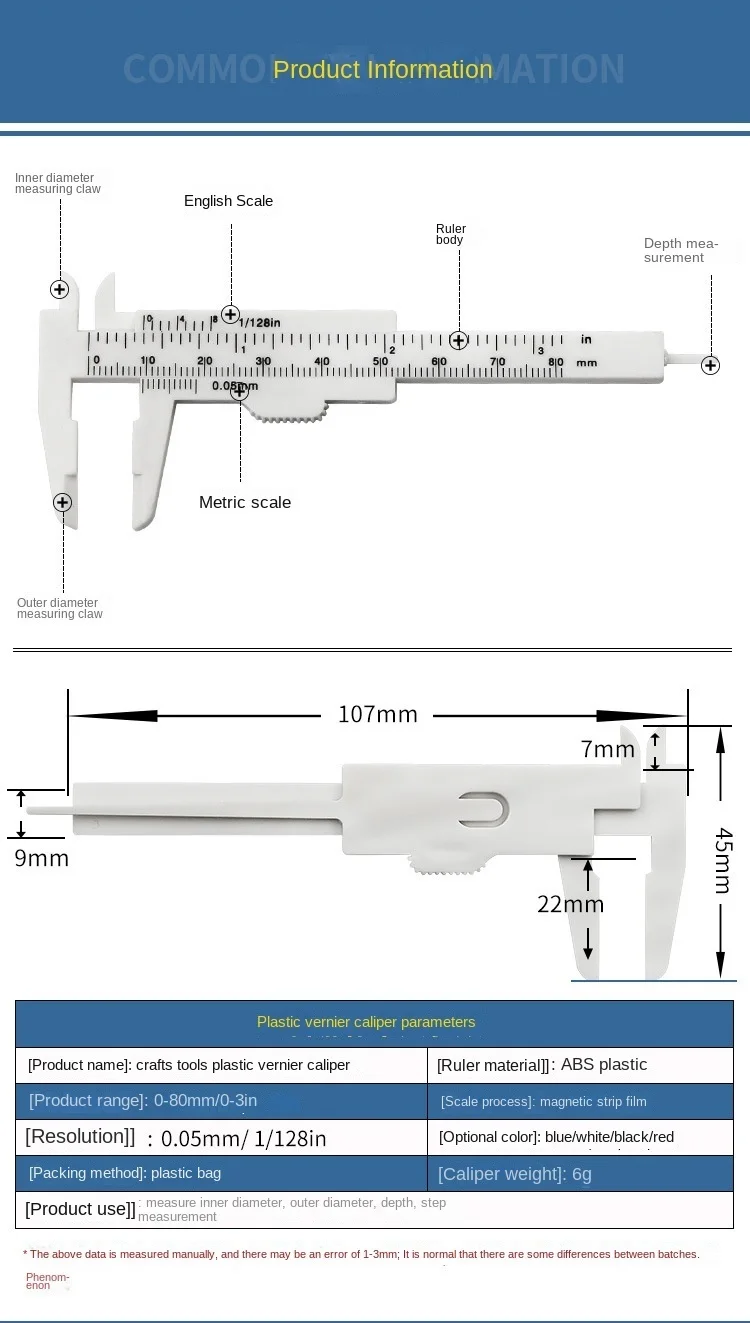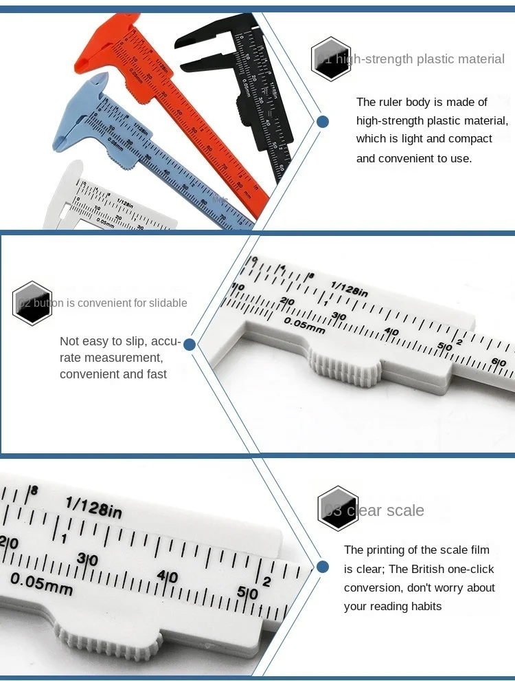 Mini 0-80mm Double Scale Plastic Vernier Caliper Ruler Measuring Student Calipers Measuring Tool Calipers Size