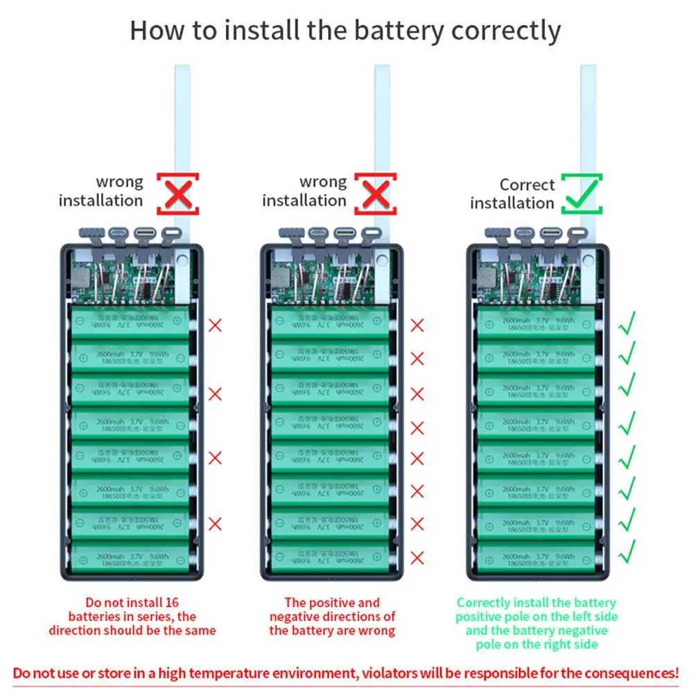 Can install 16PCS 18650 flat head batteries(Batteries not include)