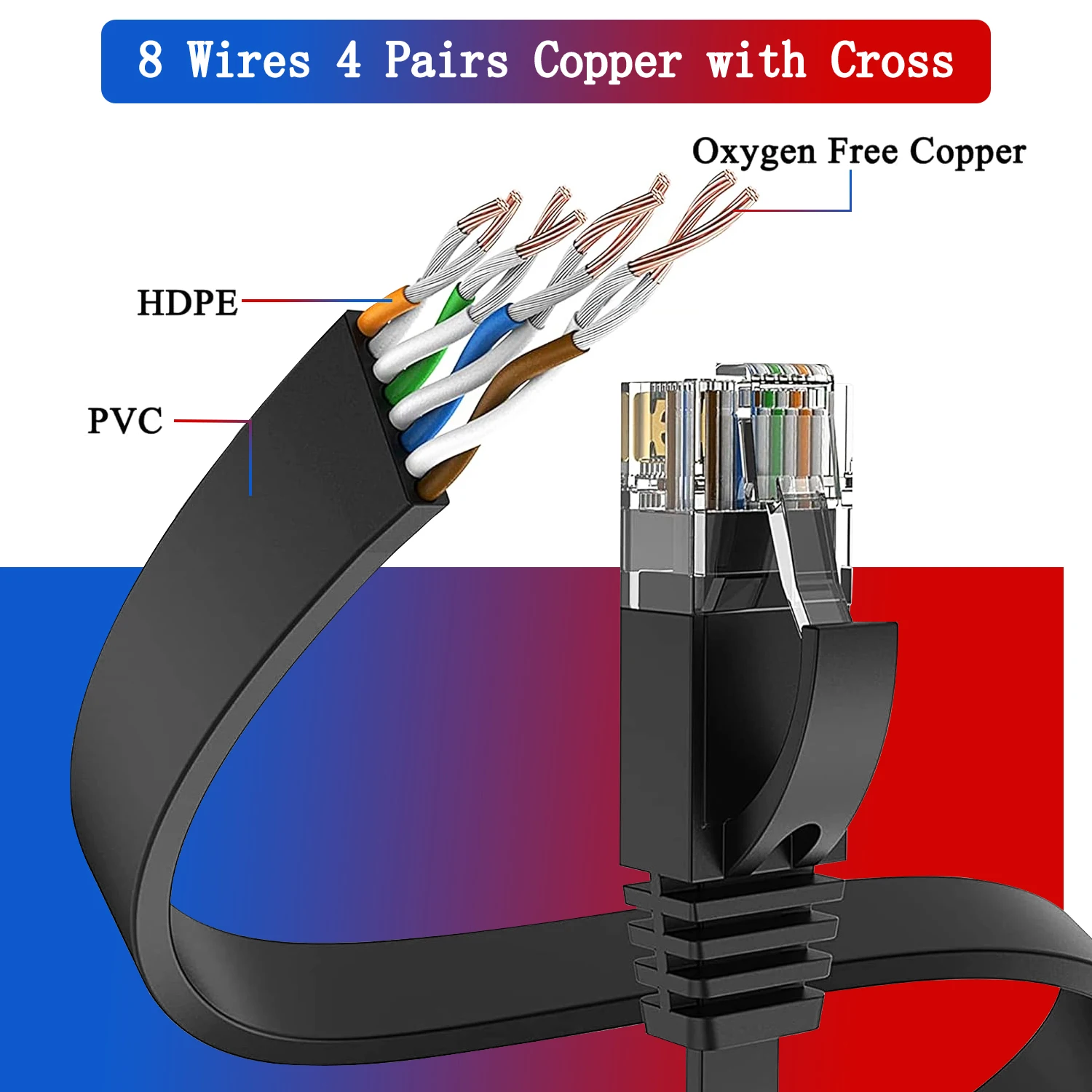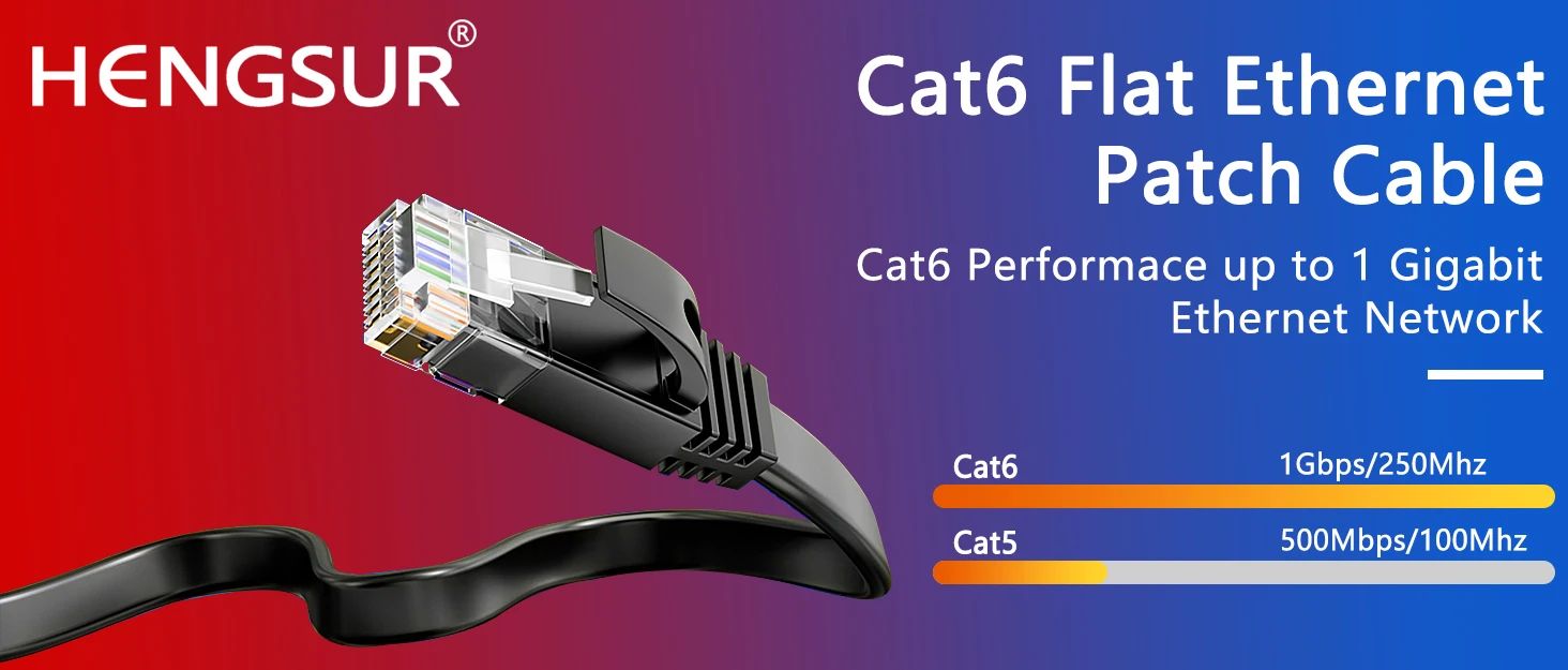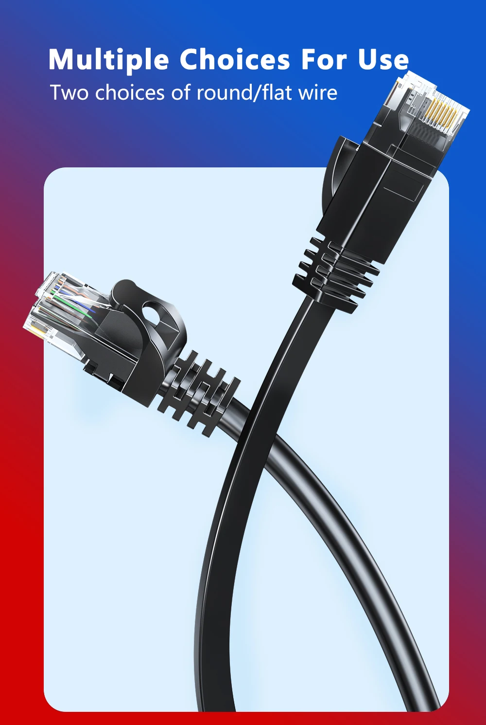 Shapes:Cat 6 flat ethernet cable and Cat 6 round ethernet cable