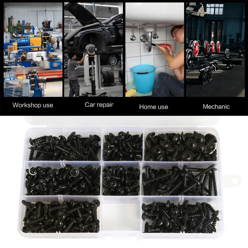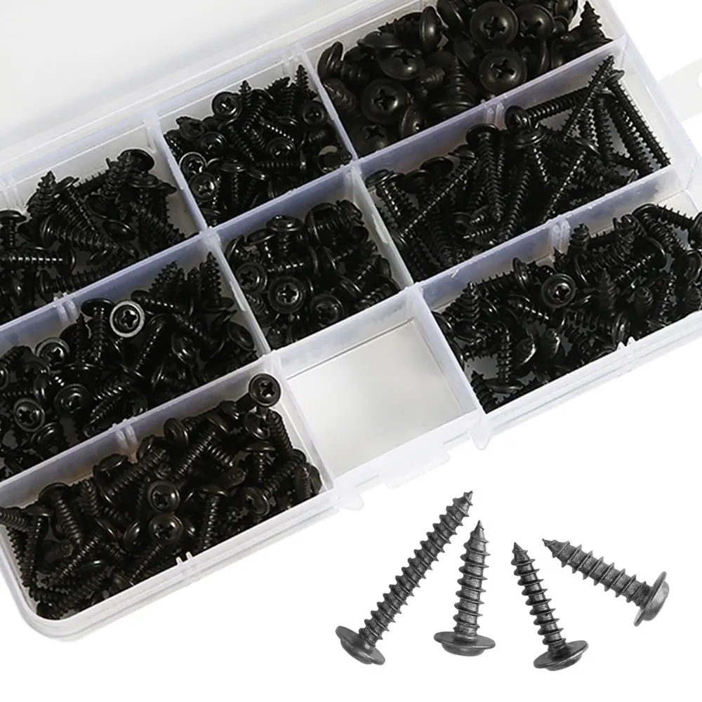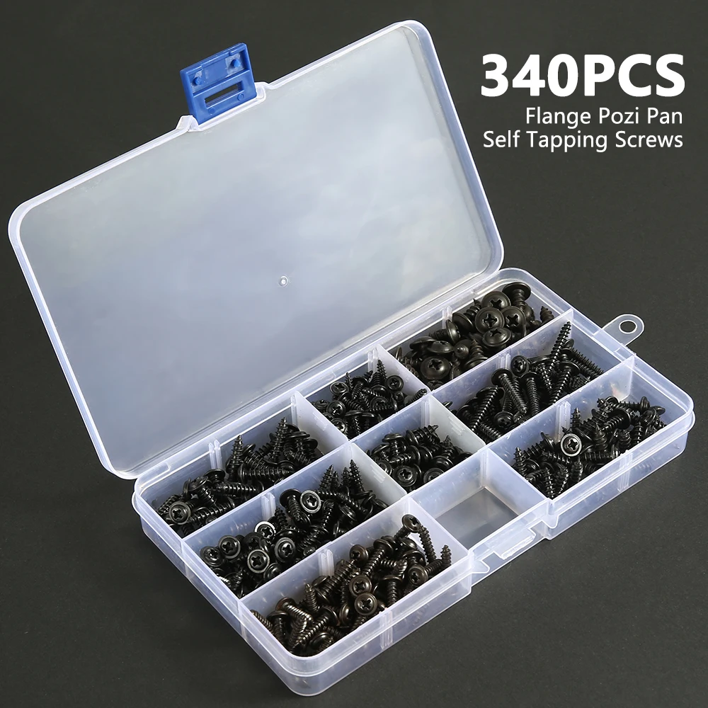 [What You Get] The package includes 340 self tapping screws of different sizes. All screws are standard metric coarse pitch. They are suitable for sheet metal and plastic.