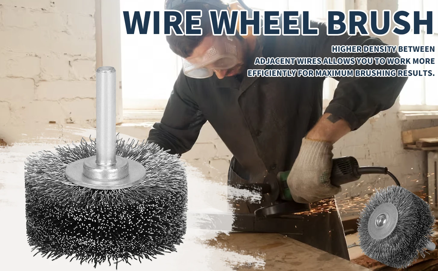 The crimped steel wire wheel is highly effective in cleaning metallic surfaces, pipes, tubing, railing, and more. This abrasive wheel brush can remove rust, scale, and paint, making it ideal for surface adhesion treatment before painting, spray coating, or electroplating.