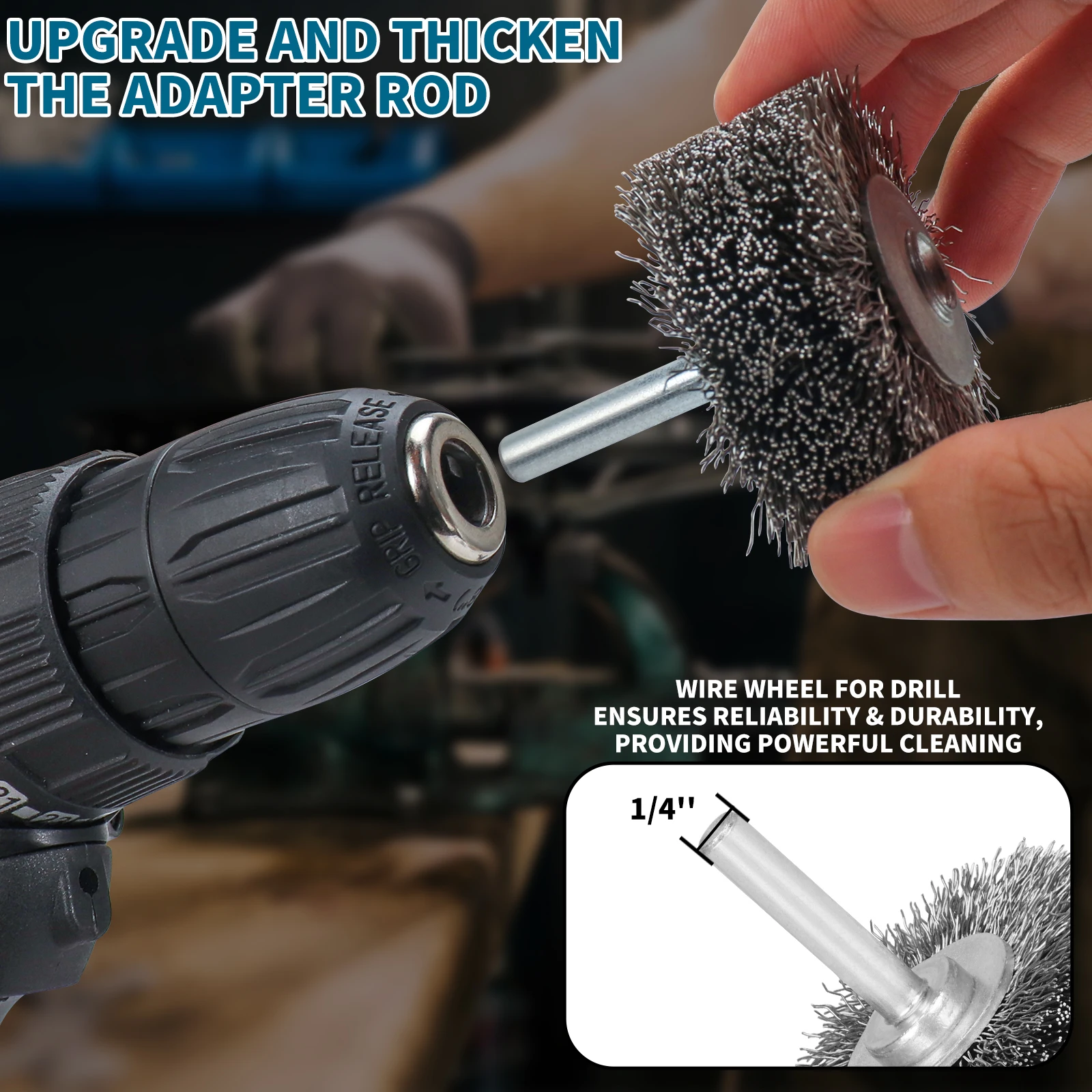 The rotary wire brush drill attachments withstands high speeds of up to 20,000 RPM and the robust 1/4 inch arbor, ensuring strong compatibility and performance with your power tools.