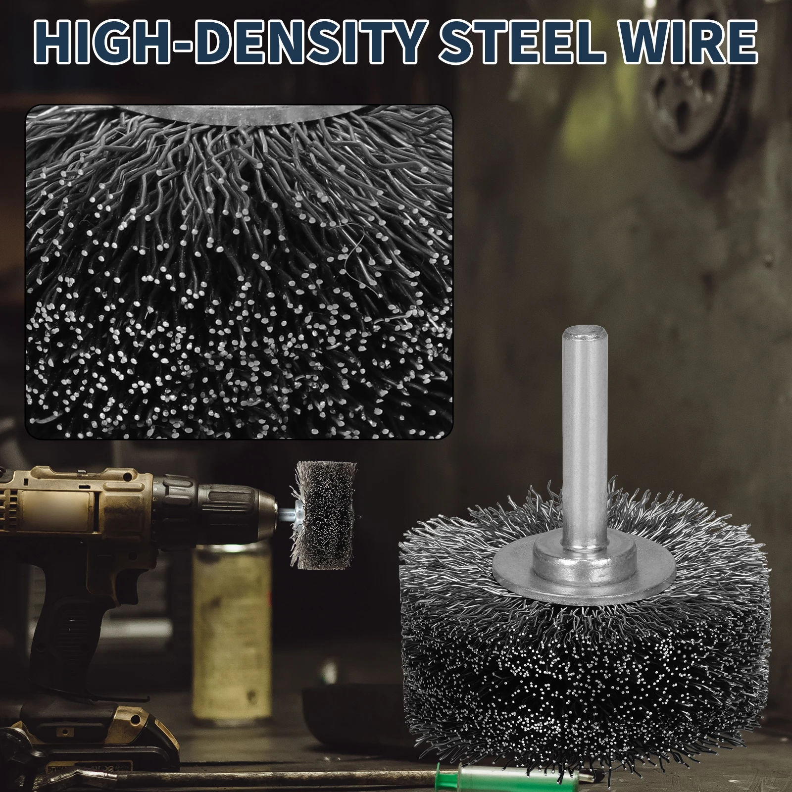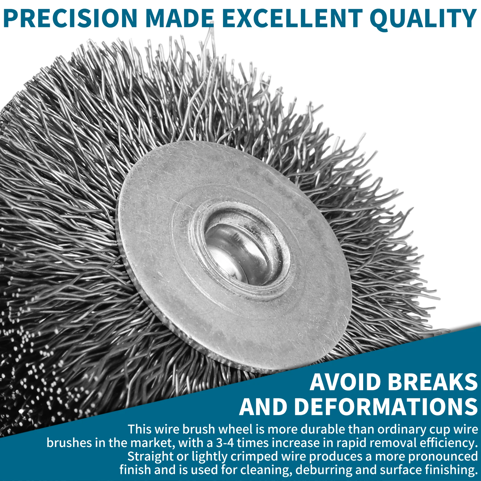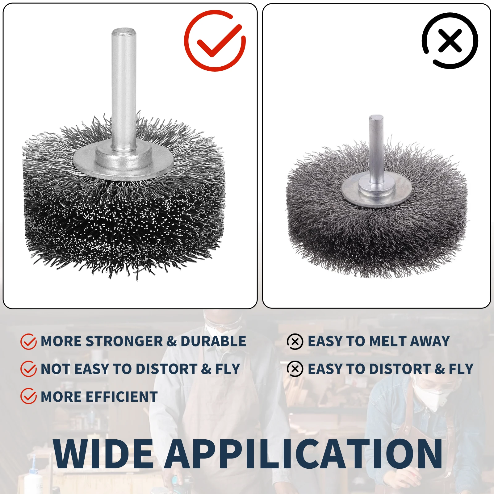The 25mm thick wire wheel for drill ensures reliability and durability. Avoid breaks and deformations while providing powerful cleaning and material removal capabilities.
