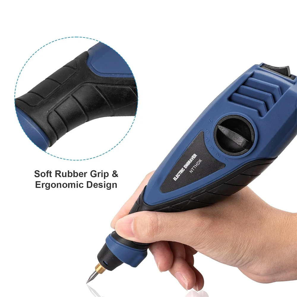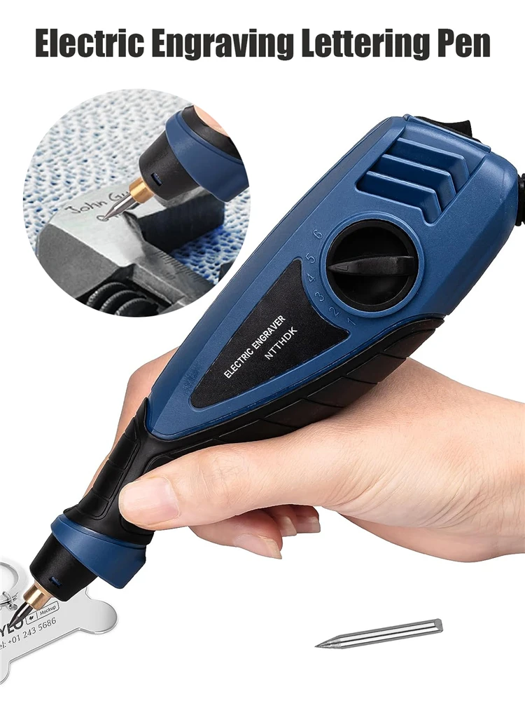 Crafted from durable metal and rubber materials, this Electric Engraver features a European standard plug and operates at 220V. Its mechanical principle utilizes high-speed vibrations to drive the metal bit for precise engraving results. The ergonomic design allows for comfortable grip and control, mimicking the feel of writing with a pen.