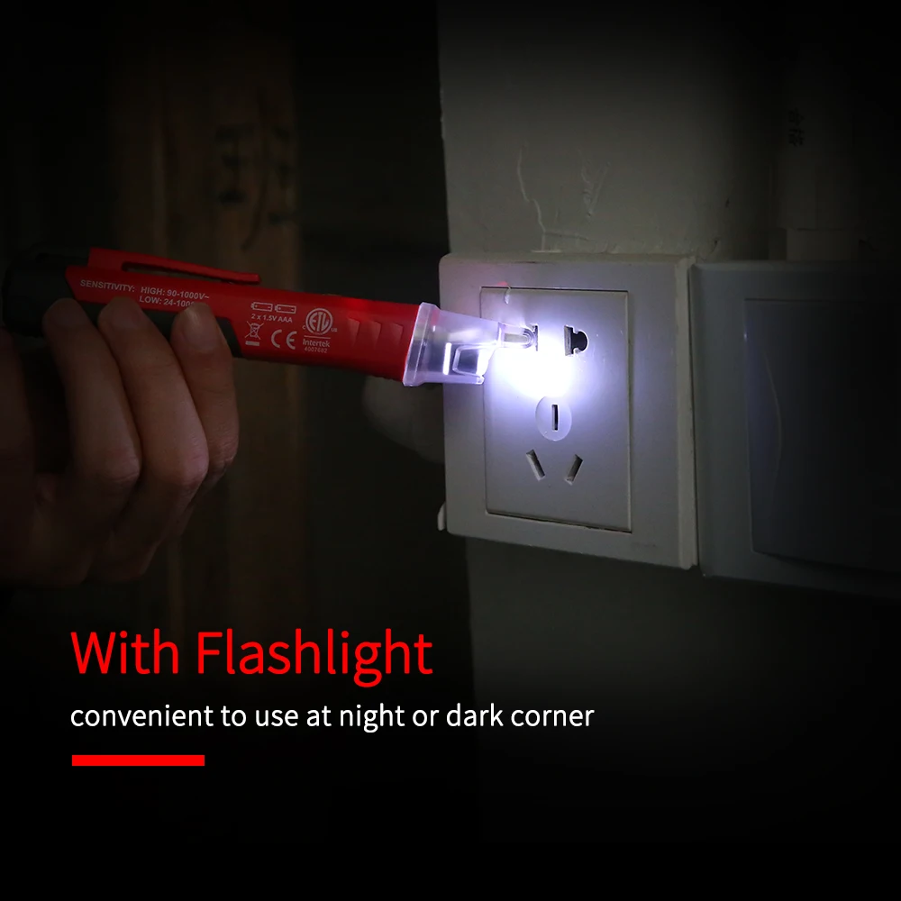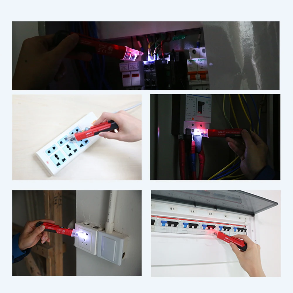Detect AC voltage by contacting the power socket or getting near the live wire with non-contact tip.