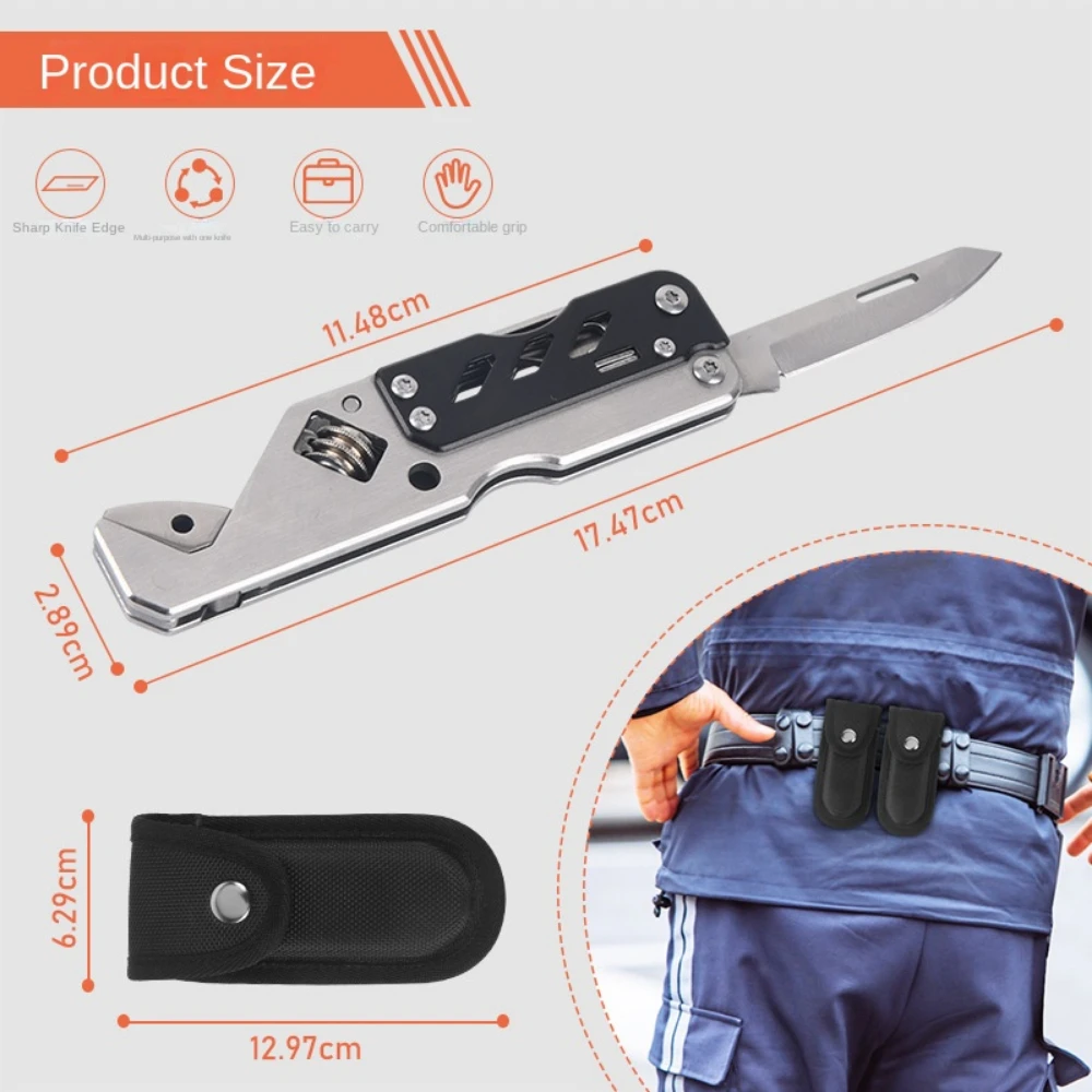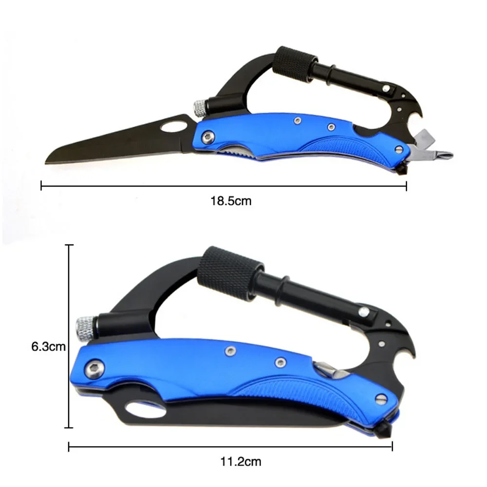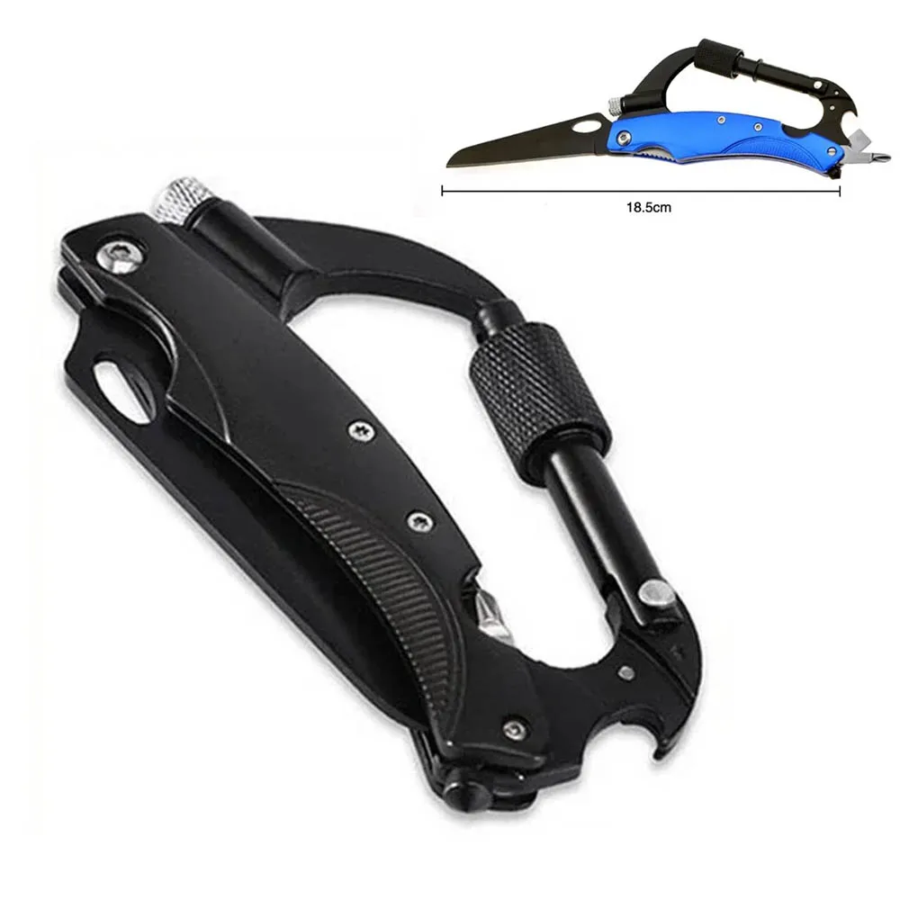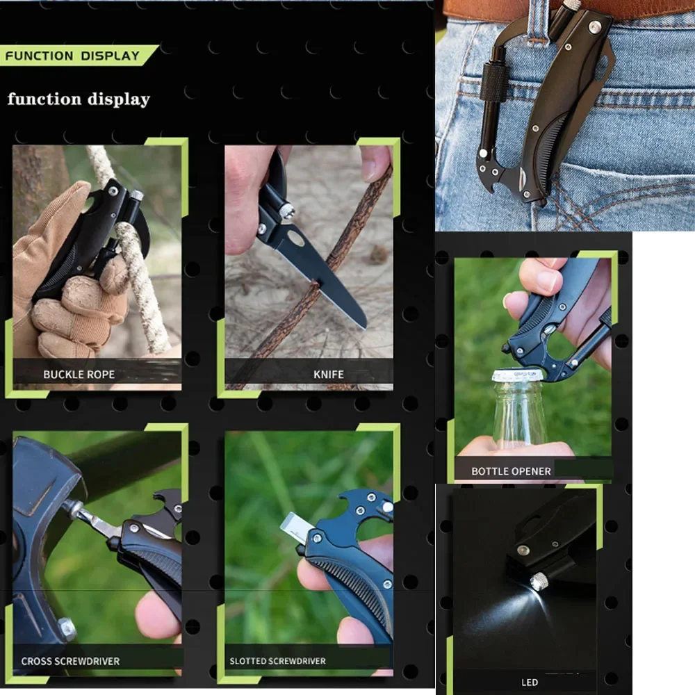 【SAFE AND EASY TO USE】This Pocket Knife for Men on The Multitool Carabiner is Equipped with a Secure Locking Pad and a Thumb Hole to Ensure Effortless Opening. Other Tools on It are Similar to LED Light, Carabiners, Screwdrivers,etc. , and Can Aslo be Quickly Opened and Used. It has carabiner knife and Glass Breakers for Outdoor Survival and Exploration.